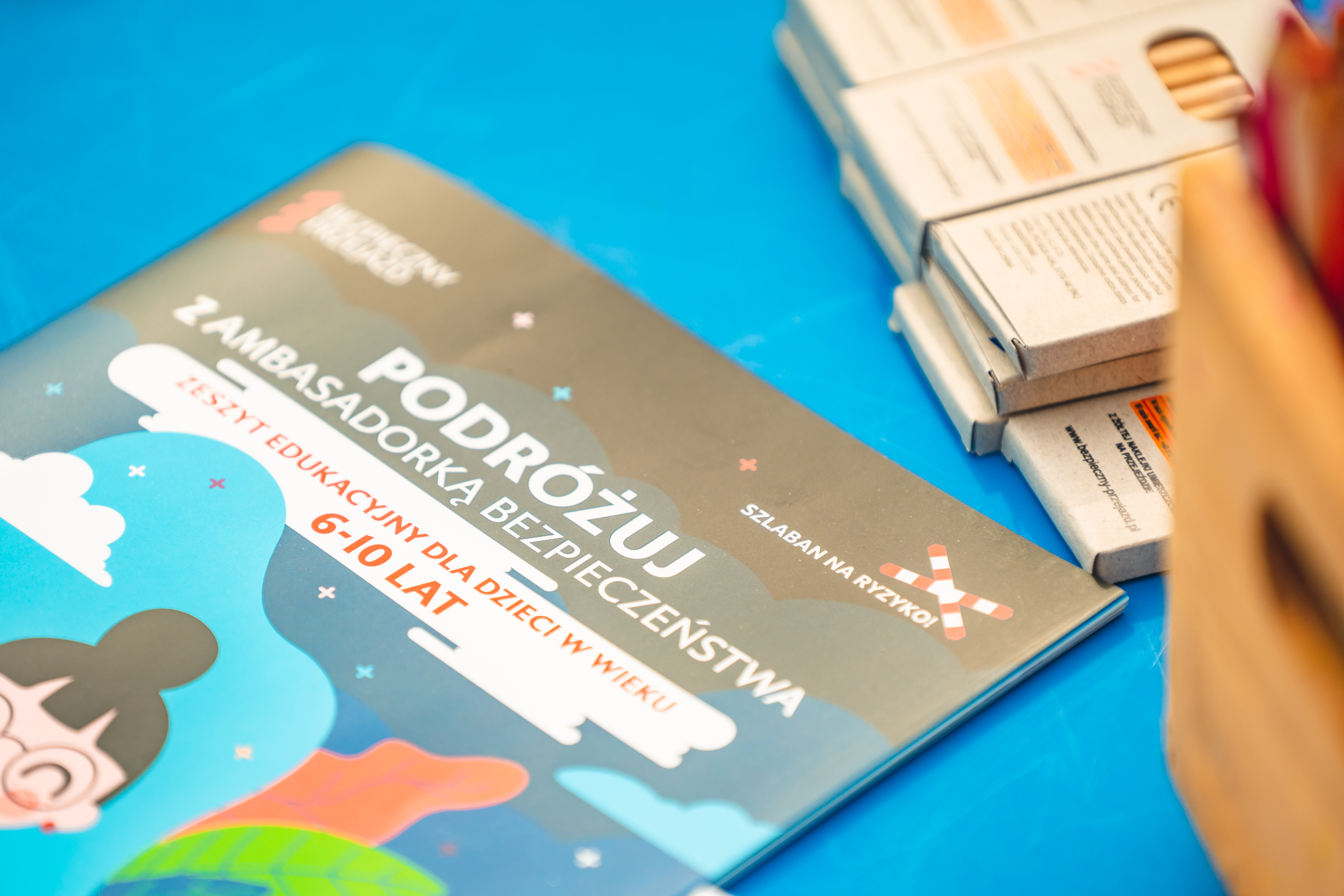 Stoisko plenerowe kampanii społecznej "Bezpieczny przejazd" zorganizowane 1 czerwca 2021 r. Kampania wzbogaciła się o kolejnych Ambasadorów Bezpieczeństwa podczas obchodów Dnia Dziecka z udziałem Prezesa Rady Ministrów RP w szkole w Bielisze (koło Radomia).