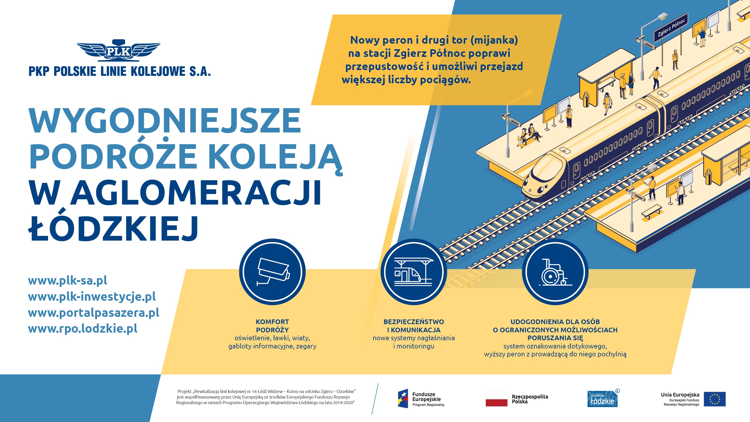 W kwietniu na przystanku Zgierz Północ rozpoczęły się przygotowania do układania nowych torów. Powstaje mijanka, która powoli zwiększyć liczbę kolejowych połączeń na trasie Łódź – Kutno. Poprawił się dostęp do kolei na stacjach Łódź Żabieniec i Zgierz. Inwestycje PKP Polskich Linii Kolejowych S.A. za ponad pół miliarda złotych na trasie Łódź Kaliska – Zgierz – Ozorków – Łęczyca – Kutno finansowane są z budżetu i współfinansowane z RPO woj. łódzkiego.
