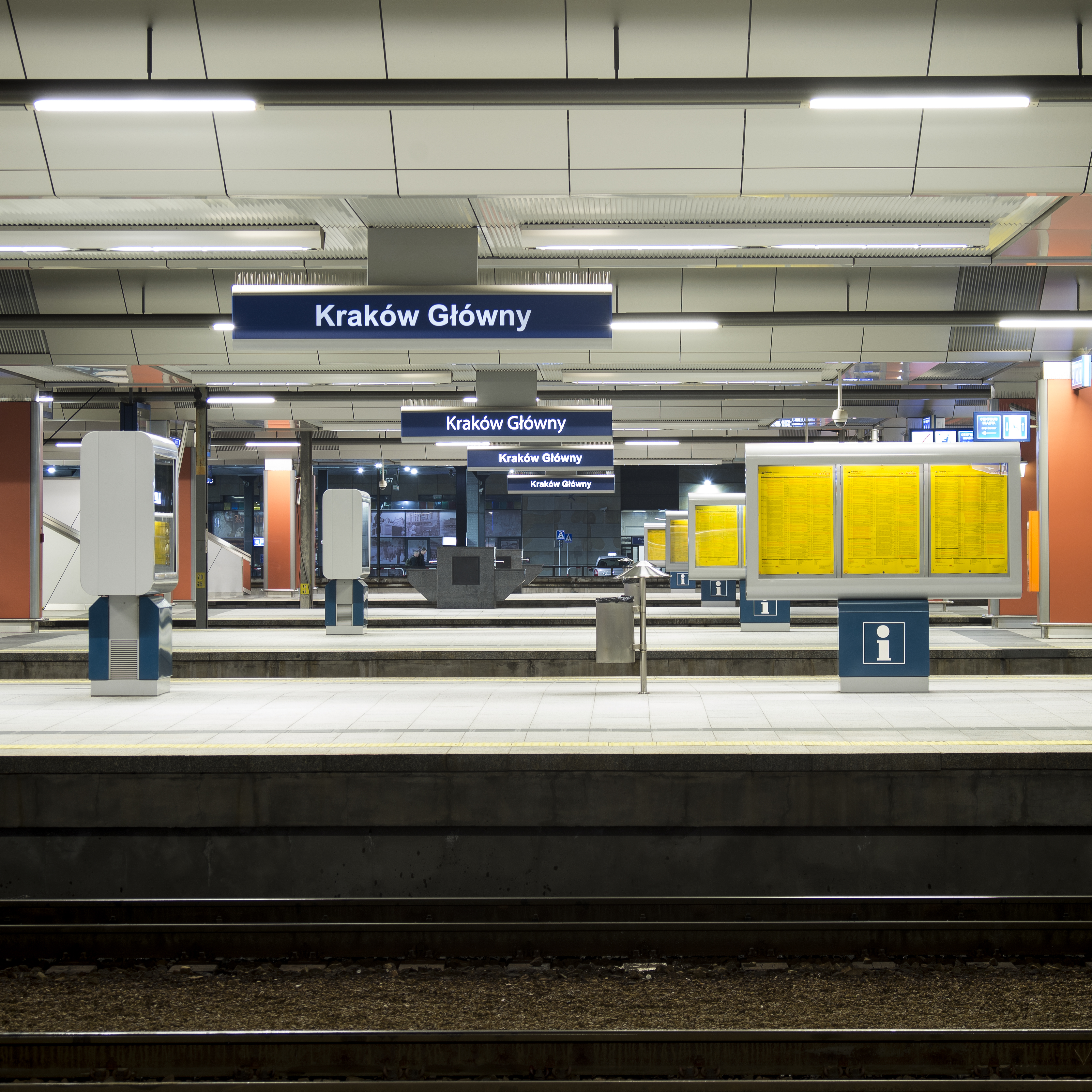 Zdjęcia dworca Kraków Główny wykonane nocą. Fotografie powstały we wrześniu 2015 r.