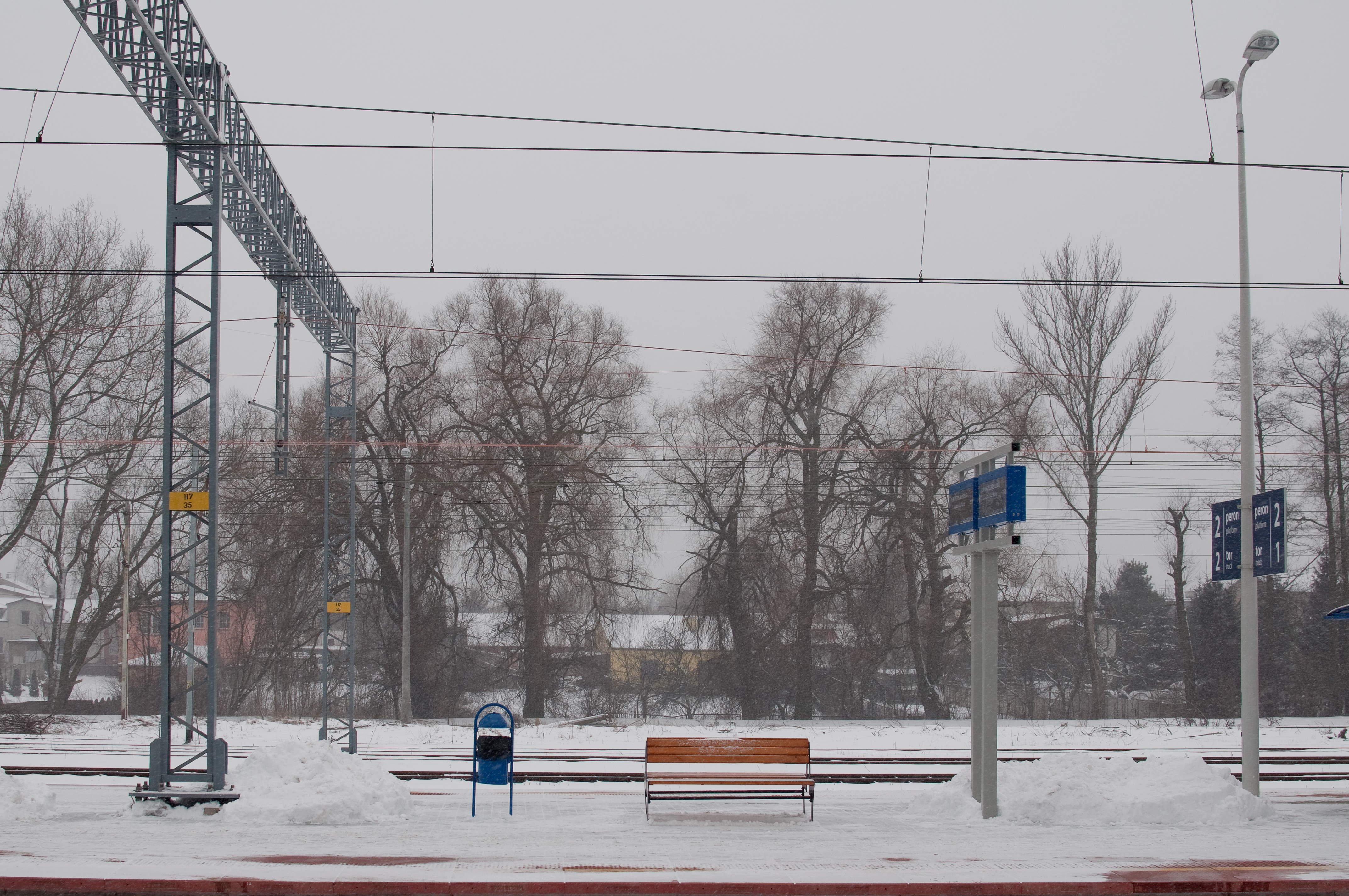 peron, Częstochowa, Częstochowa Stradom, zima, ławka