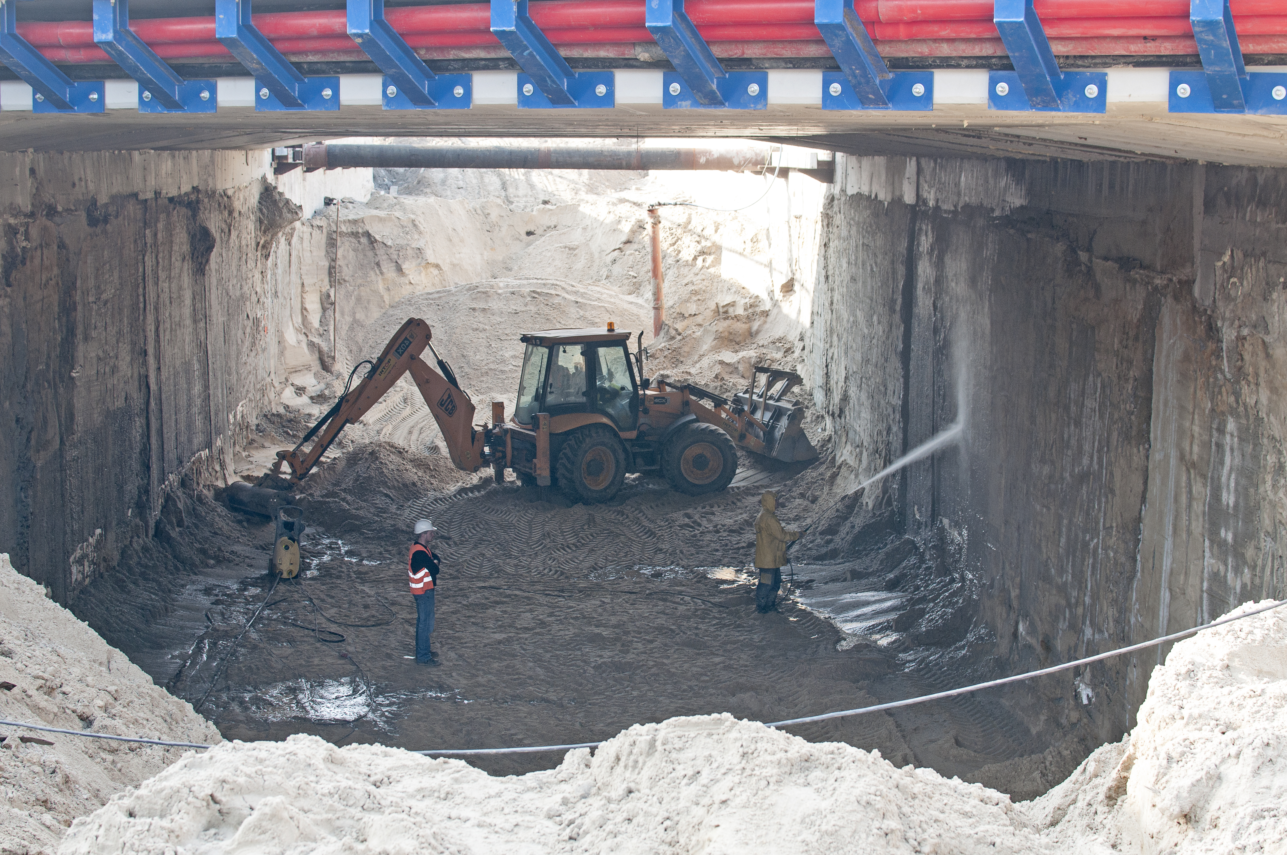 Modernizacji linii kolejowych często towarzyszy budowa bezkolizyjnych skrzyżowań wielopoziomowych. Takie obiekty znacząco podwyższają poziom bezpieczeństwa ruchu. Usprawniają też komunikację - zarówno kolejową jak i drogową. Pociągi nie muszą zwalniać przed przejazdami, a kierowcy nie stoją przed zamkniętymi rogatkami. Bezkolizyjne skrzyżowanie powstaje obecnie m.in. na ulicy Bałtyckiej w Grodzisku Mazowieckim. Budowany tunel drogowypołączy dwie strony miasta. Fotografie wykonano w marcu 2015 r.