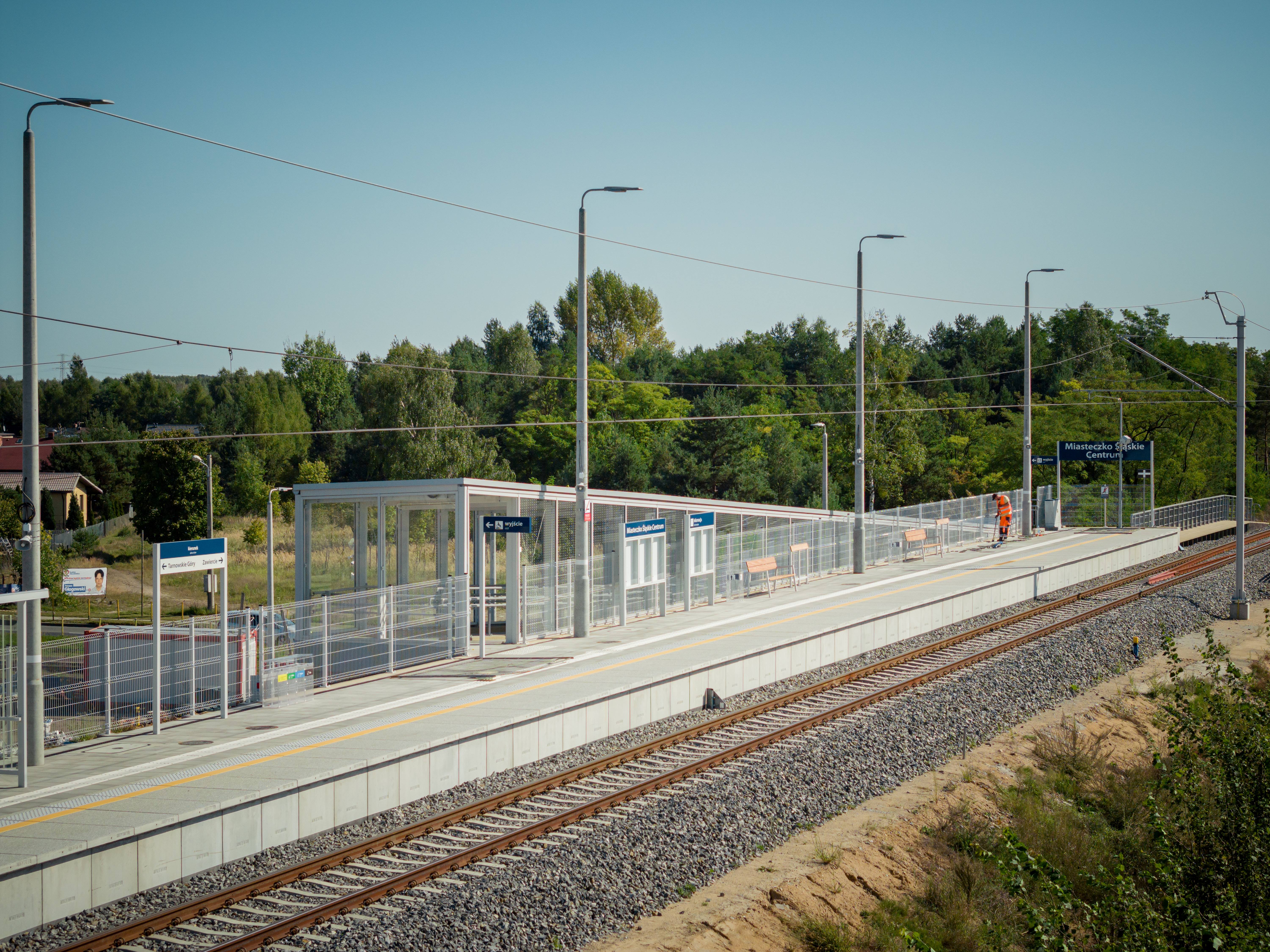 PLK-2023-12-08-Od-niedzieli-dojedziemy-pociagiem-do-lotniska-w-Pyrzowicach-Przystanek-Miasteczko-Slaskie-Centrum-tor-i-peron-z-wiata-fot.jpg