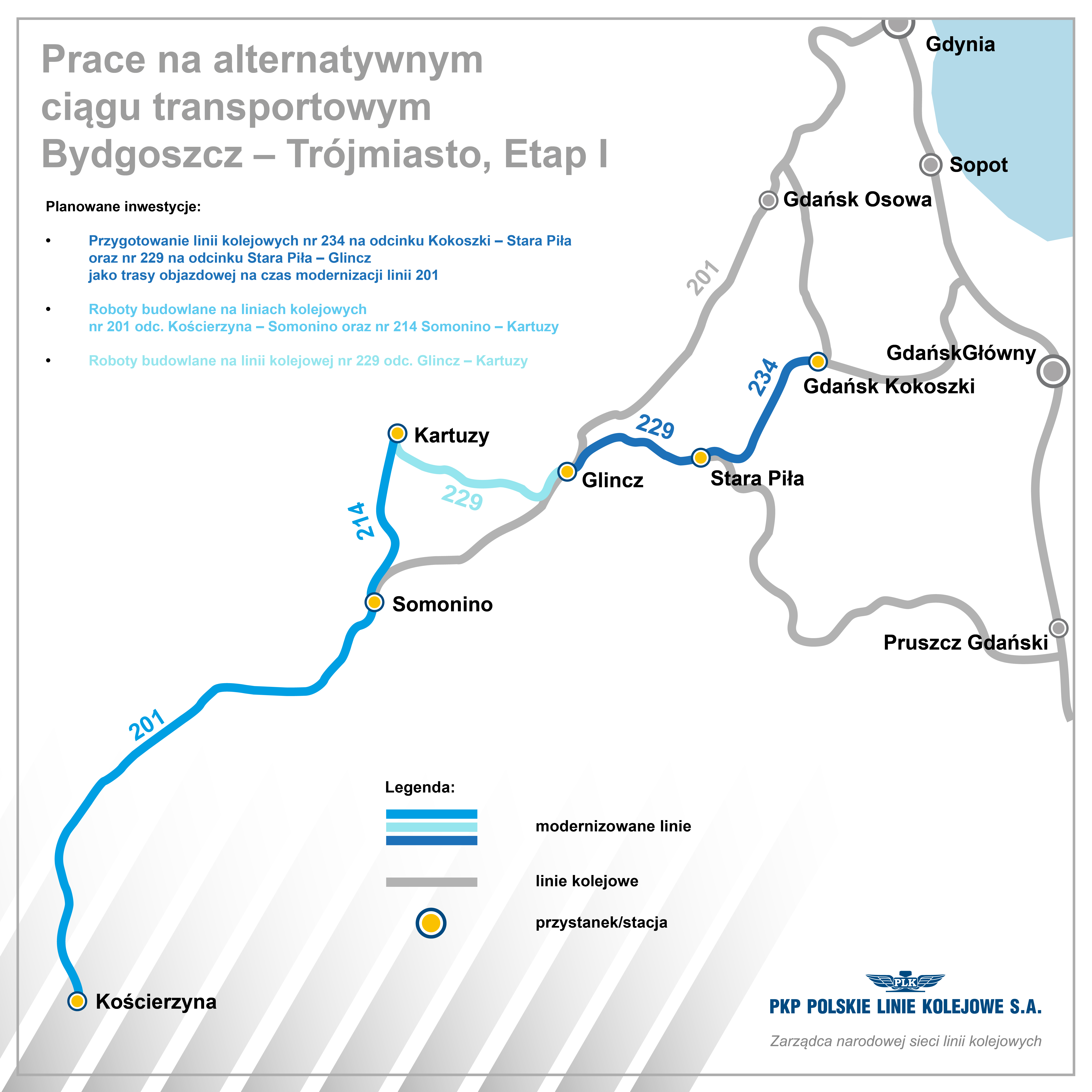 infografika, Kościerzyna, LK201, LK229, Somonino, Stara Piła, LK234, Glincz, Gdańsk Kokoszki
