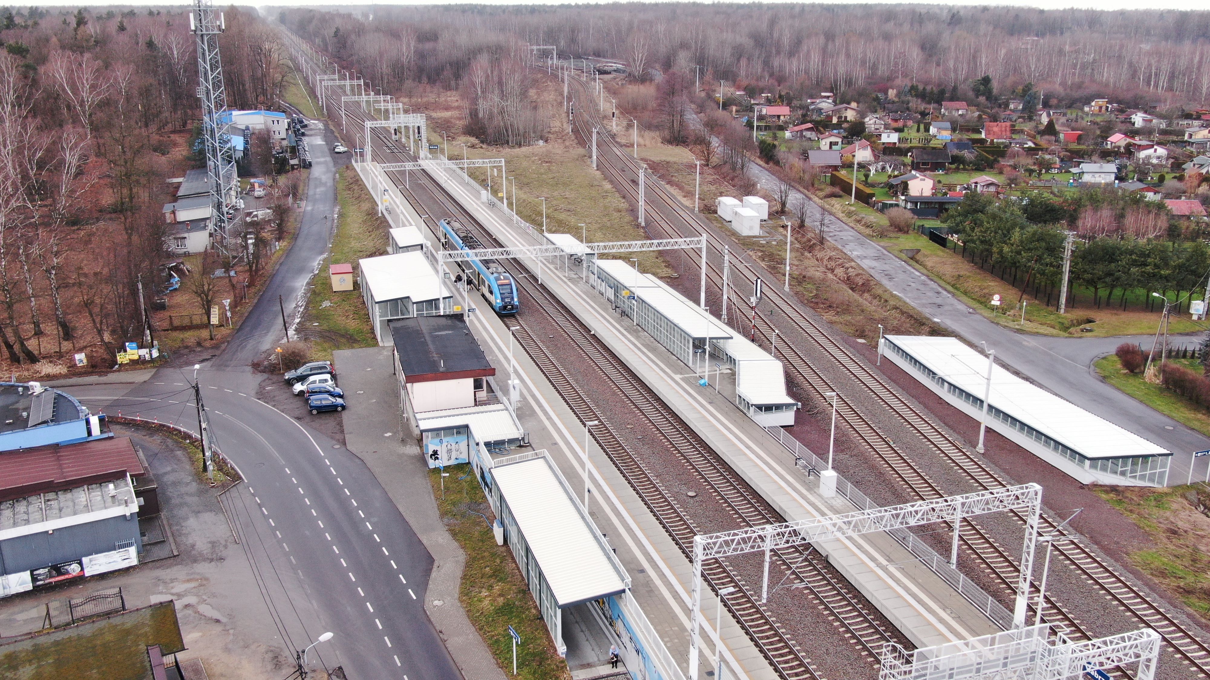 PLK-2023-03-06-Komfortowe-podroze-koleja-z-Czechowic-Dziedzic-Zabrzegu-i-Goczalkowic-Zdroju-Przystanek-Zabrzeg-z-lotu-ptaka-pociag-przy-peronie-fot.jpg