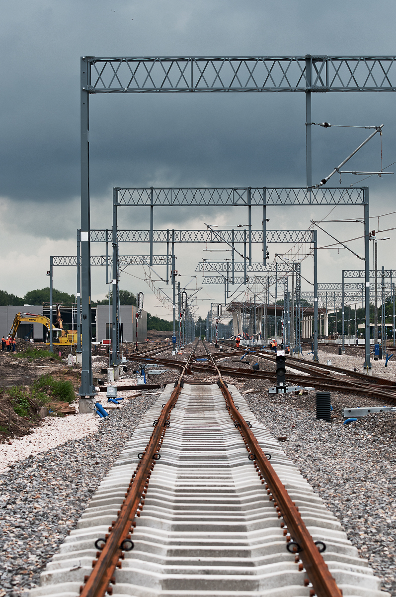Po zakończeniu prac na stacji Łódź Widzew pasażerowie będą mieli do dyspozycji nowe, w pełni zadaszone perony i wygodne przejście podziemne. Łódź Widzew jest kluczową stacją łódzkiego węzła kolejowego. Stąd biegną tory w kierunku Łodzi Kaliskiej, budowanej Łodzi Fabrycznej i po nowo uruchomionej w 2014 roku linii do Zgierza. Fotografie wykonano w kwietniu 2014 r.