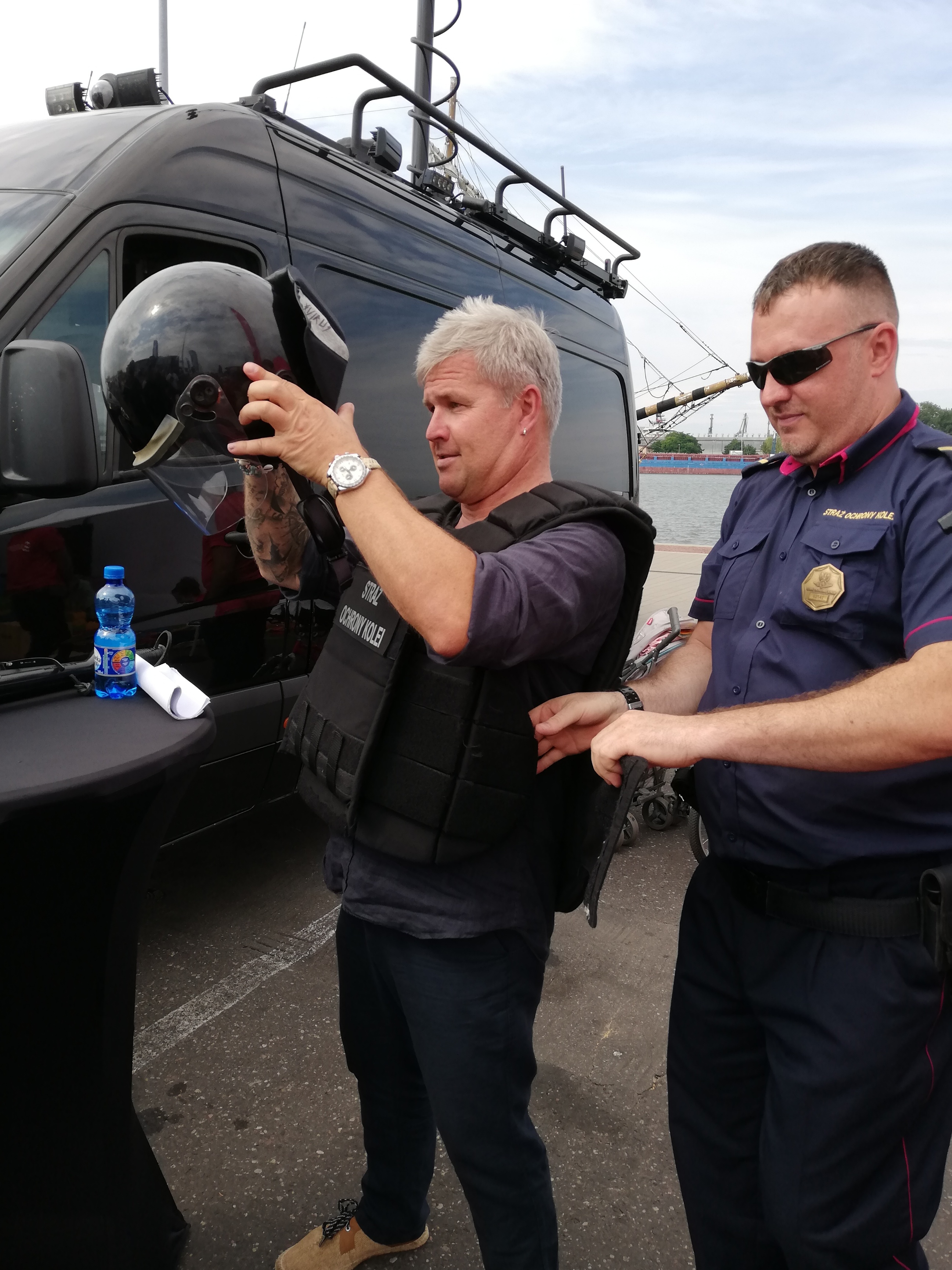 Stoisko promocyjne kampanii społecznej "Bezpieczny przejazd..." na Moto Safety Day, organizowanym w Gdyni 27 lipca 2019 r.