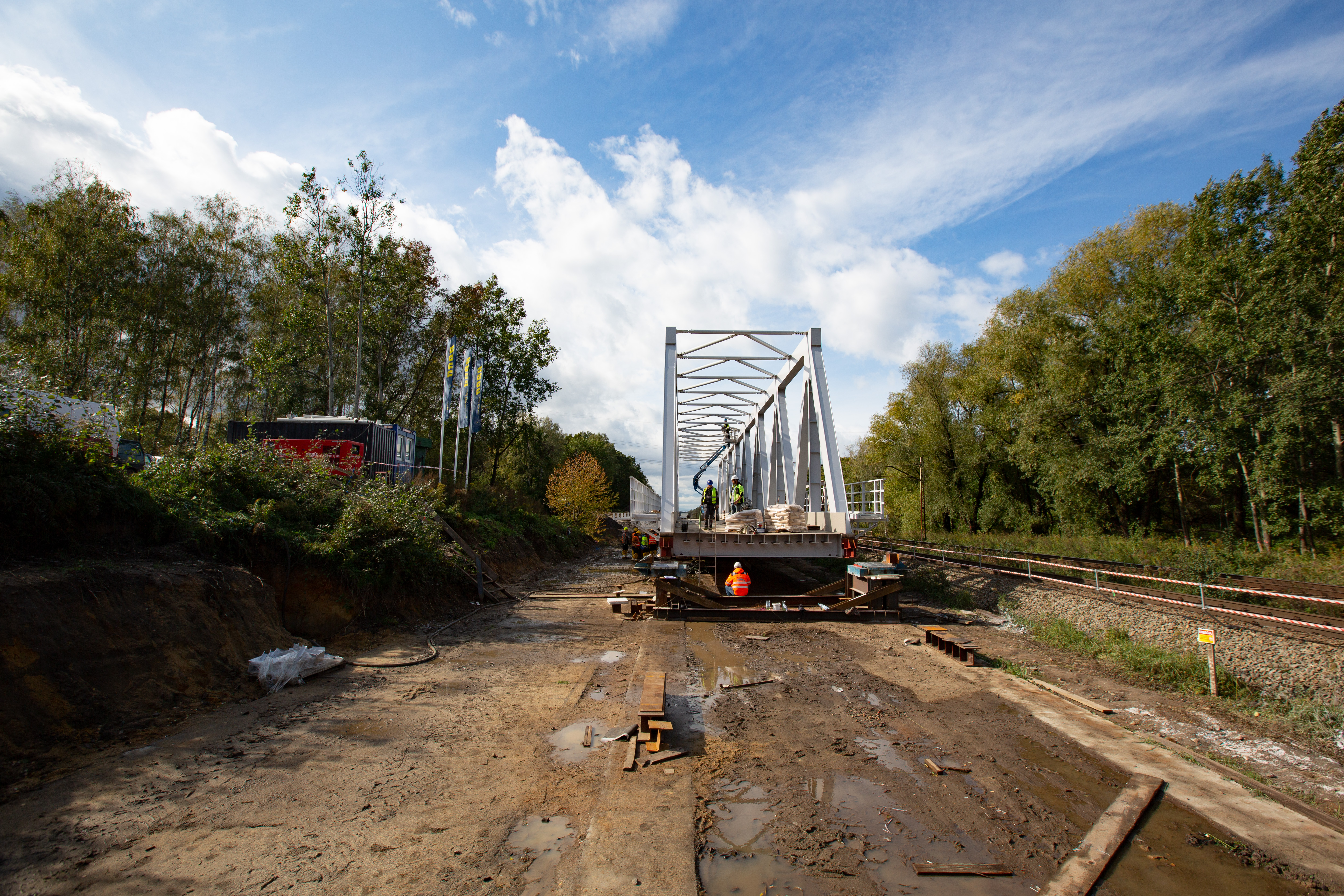 Nasuwanie mostu nad Kanałem Kędzierzyńskim; wrzesień 2019