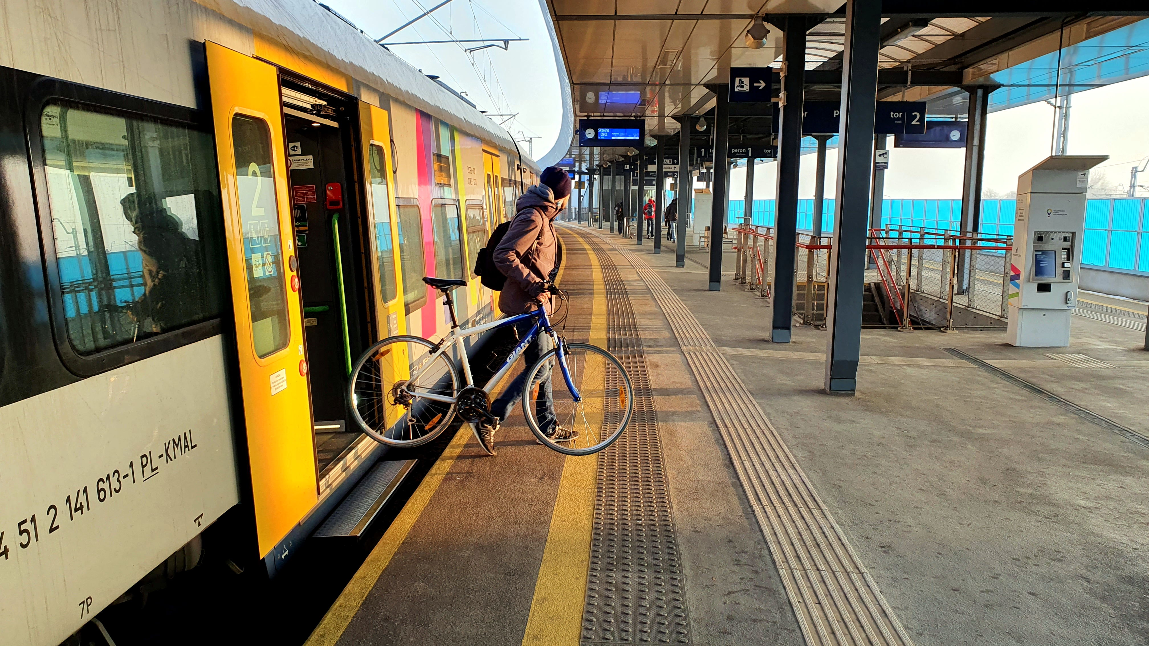 PLK-2022-01-10-Krakow-Skawina-kilkaset-atrakcyjnych-polaczen-kolejowych-Podrozny-z-rowerem-wysiada-na-przystanku-Krakow-Podgorze-fot.jpg