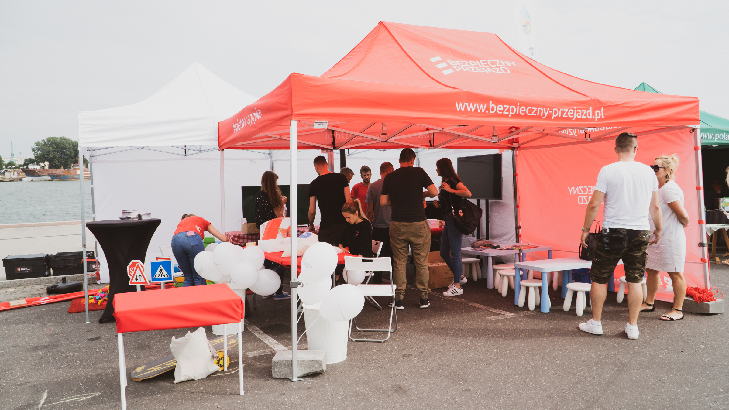 Stoisko promocyjne kampanii społecznej "Bezpieczny przejazd..." na Moto Safety Day, organizowanym w Gdyni 27 lipca 2019 r.