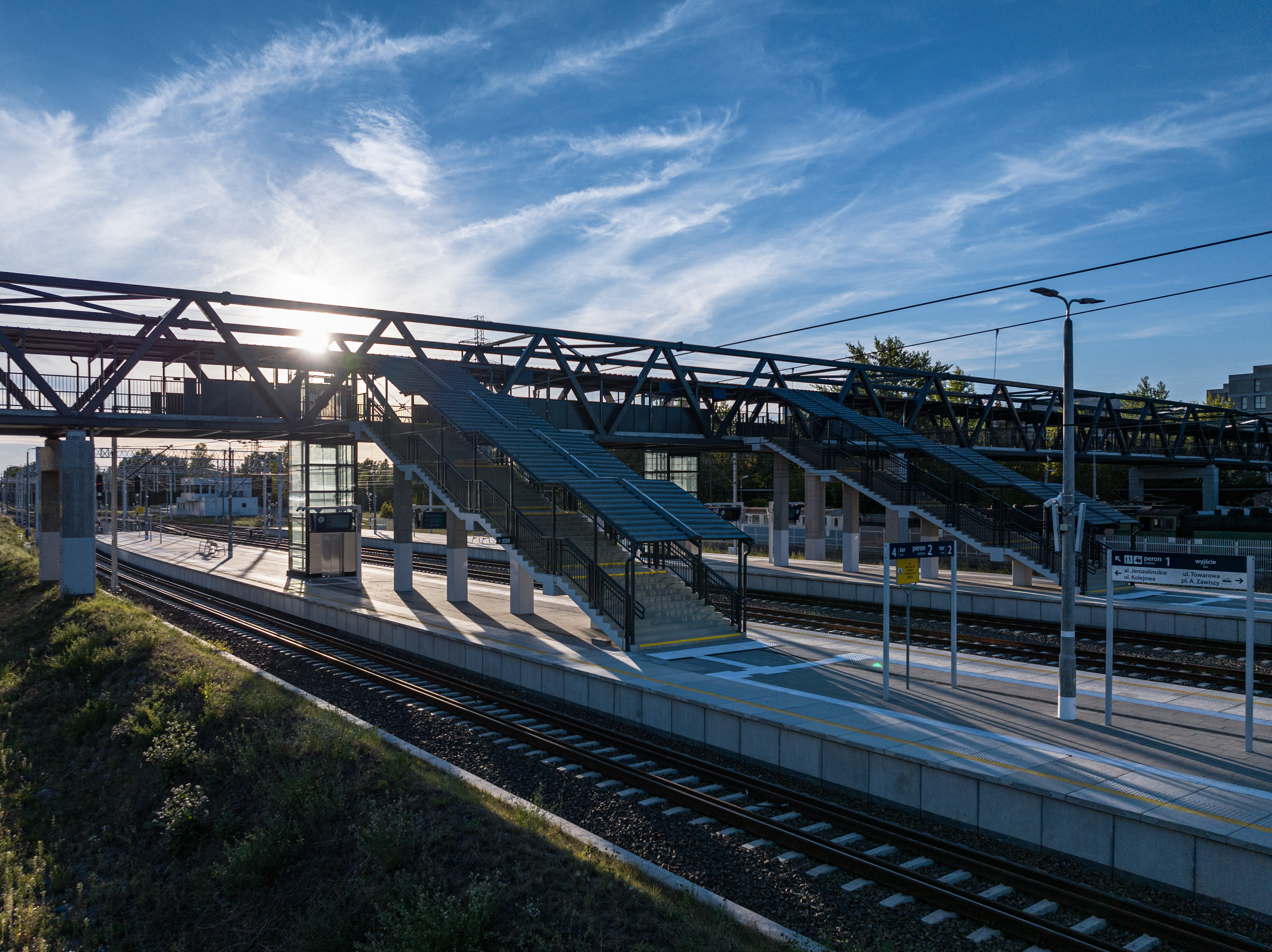 peron, kładka, Warszawa Główna, zdjęcia z drona, wieżowce
