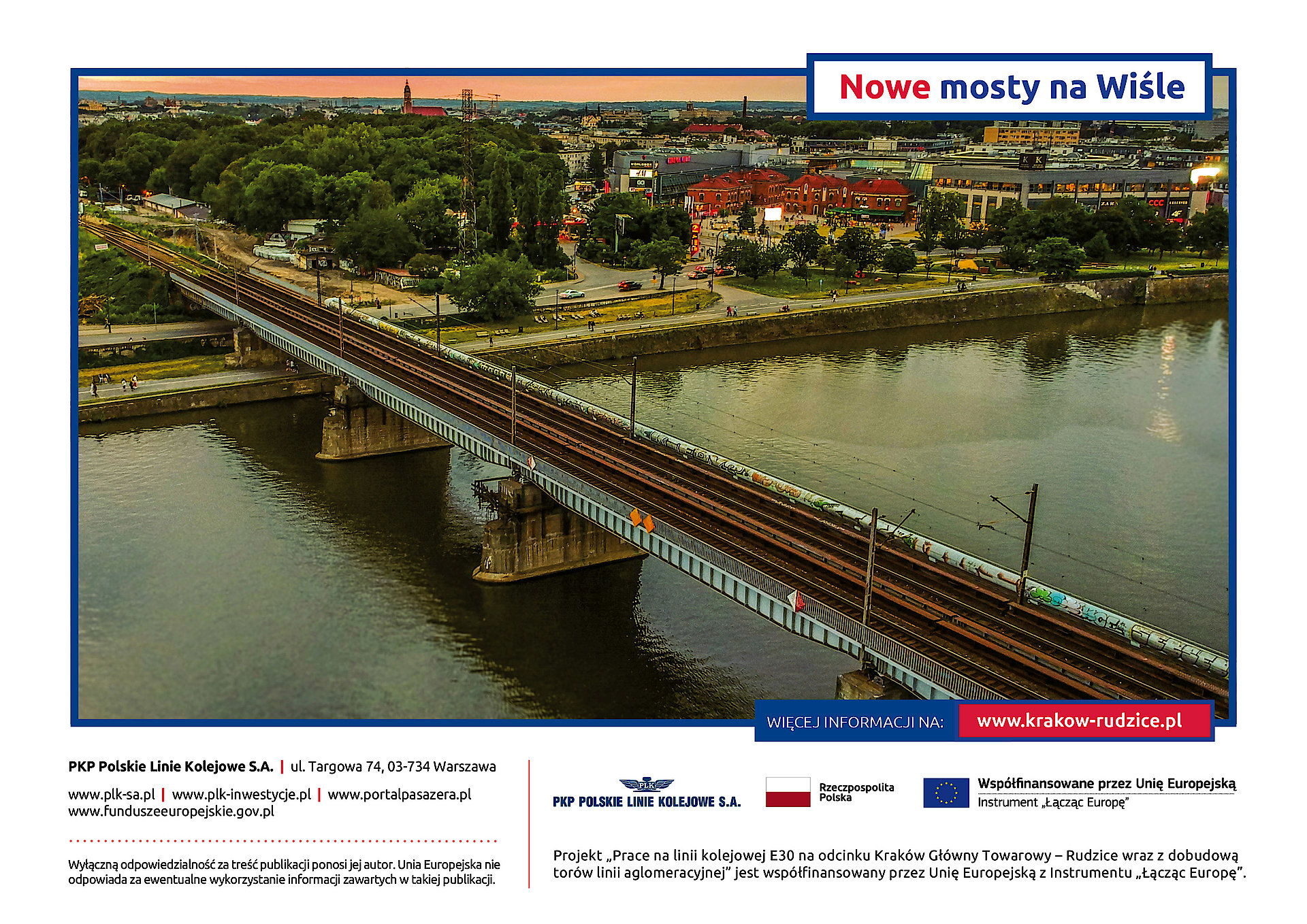 Szybsze podróże koleją przez Kraków i sprawne przejazdy pociągów dalekobieżnych, zapewnią nowe, niemal ćwierćkilometrowe mosty na Wiśle. PKP Polskie Linie Kolejowe S.A. w czerwcu rozpoczynają budowę przepraw. To kolejny etap modernizacji krakowskiej linii średnicowej.