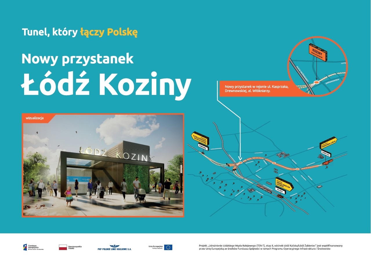 W tunelu między stacjami Łódź Fabryczna a Żabieniec i Kaliska, poza budowanymi przystankami Polesie i Śródmieście, będzie trzeci - Łódź Koziny. PKP Polskie Linie Kolejowe S.A. podpisały umowę i w miejscu komory rozjazdowej przy ul. Włókniarzy powstanie dodatkowy przystanek za blisko 188 mln zł. Inwestycja realizowana z udziałem środków POIiŚ zwiększy rolę kolei w połączeniach aglomeracyjnych i dalekobieżnych.