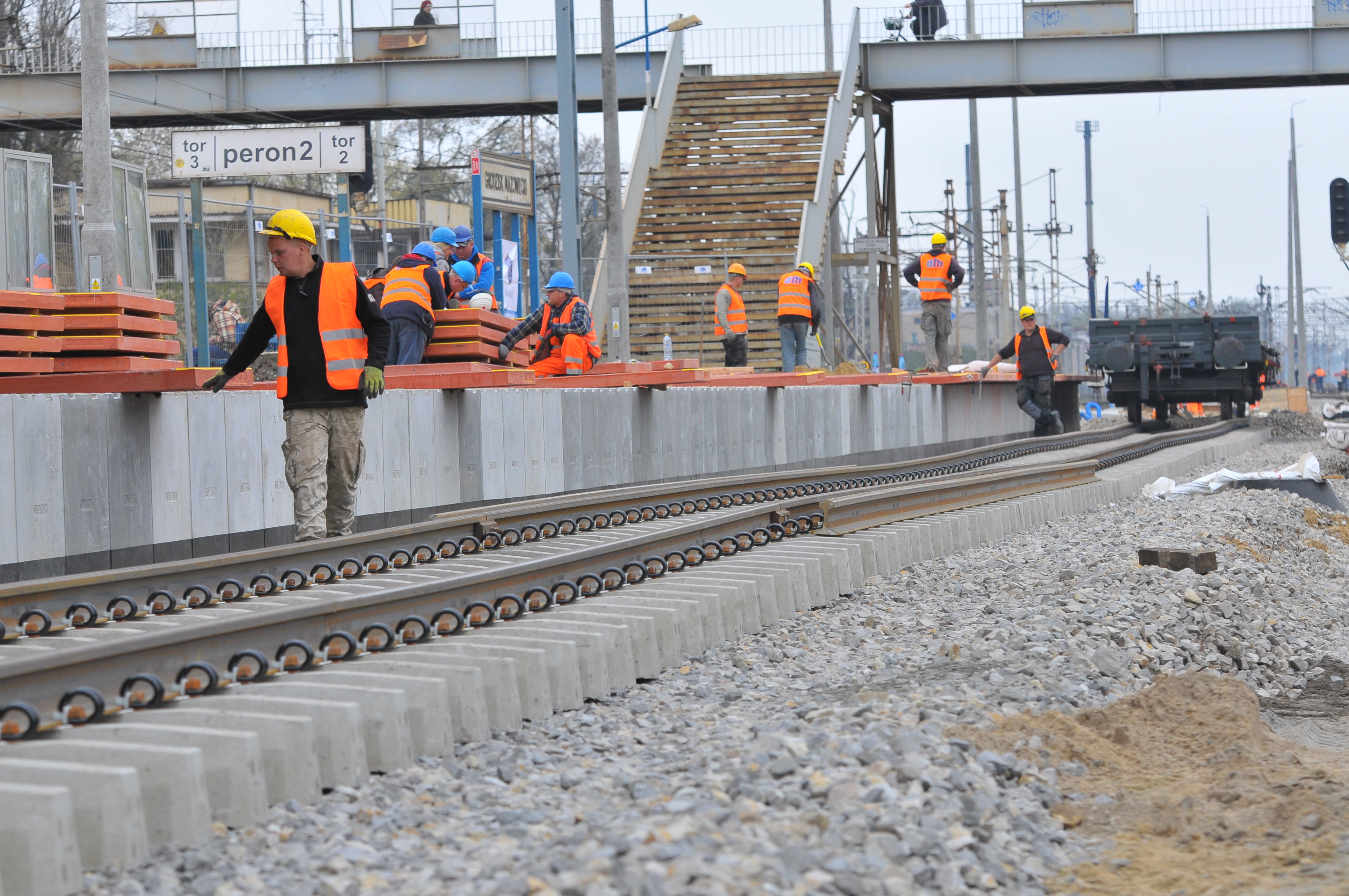 Postęp prac modernizacyjnych na linii kolejowej z Warszawy do Łodzi na odcinku Warszawa – Skierniewice (Miedniewice). Fotografie wykonano na stacji Grodzisk Mazowiecki w kwietniu 2014 r.