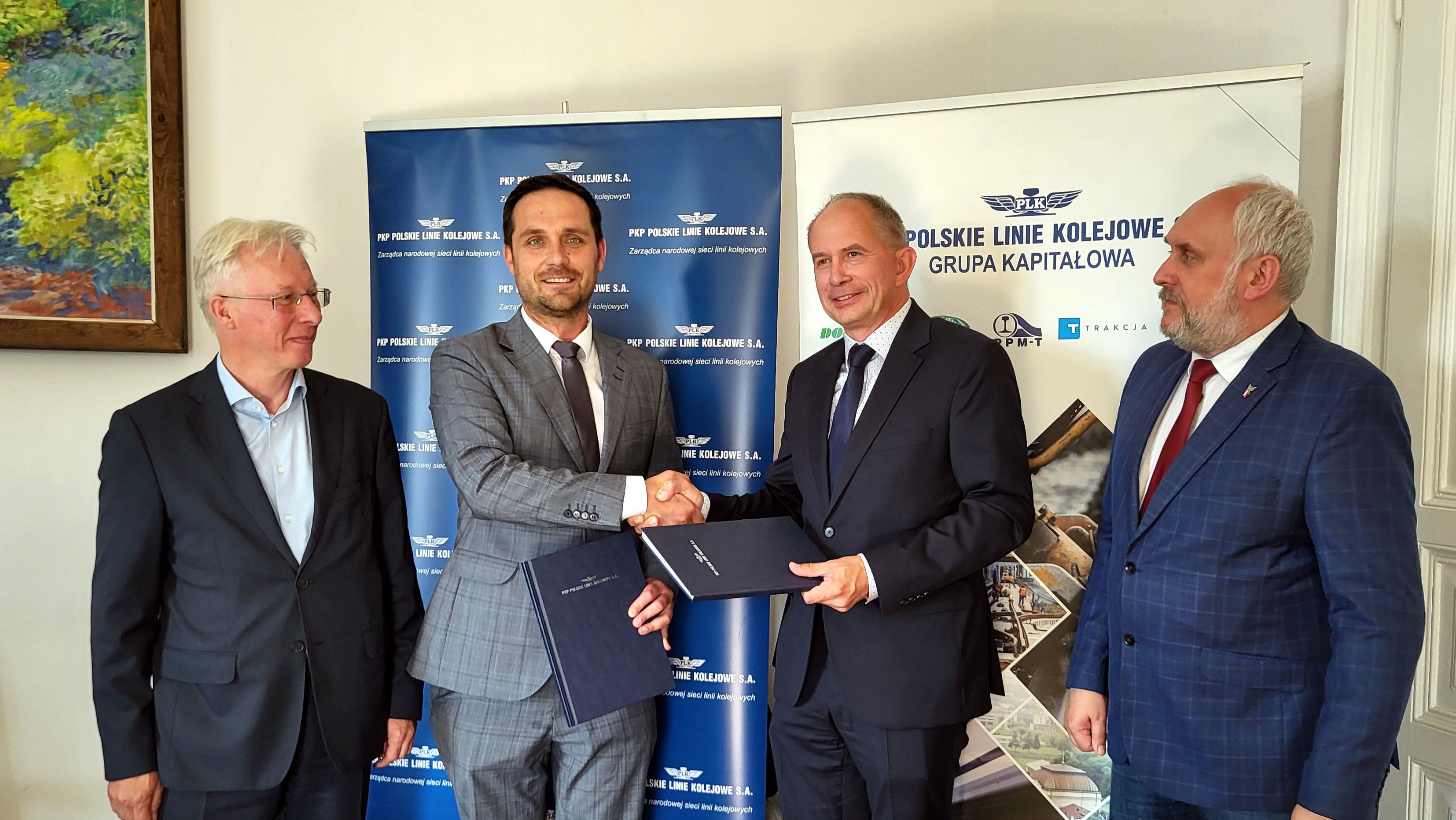 PLK-2024-06-20-Modernizacja-trasy-Kozlow-Sedziszow-przyspieszy-podroze-z-Krakowa-do-Kielc-Wlodzimierz-Zmuda-Mateusz-Wanat-Centrum-Realizacji-Inwestycji-PLK-SA-Michal-Ulatowski-Slawomir-Kopanski-PPMT-po-podpisaniu-unowy-na-modernizacje-lk8-Kozlow-Sedziszow