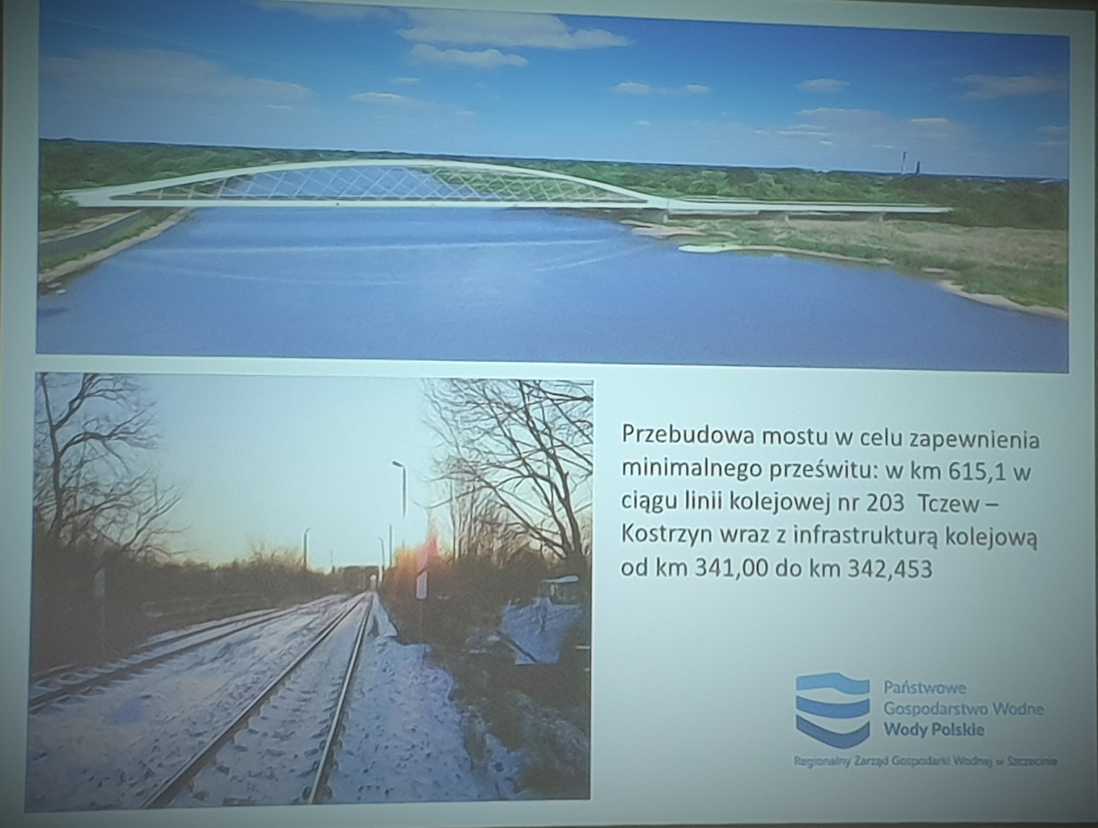 W Szczecinie zostało zawarte porozumienie pomiędzy PKP Polskimi Liniami Kolejowymi S.A. a Państwowym Gospodarstwem Wodnym Wody Polskie – Regionalnym Zarządem Gospodarki Wodnej w Szczecinie. Strony będą współpracować w zakresie przebudowy torów (dojazdu) do nowego mostu kolejowego nad Odrą w Kostrzynie na linii Tczew – Kostrzyn nr 203. Współpraca będzie prowadzona w ramach rządowego Projektu Ochrony Przeciwpowodziowej w Dorzeczu Odry i Wisły. RZGW zrealizuje przedsięwzięcie inwestycyjne własnym kosztem.