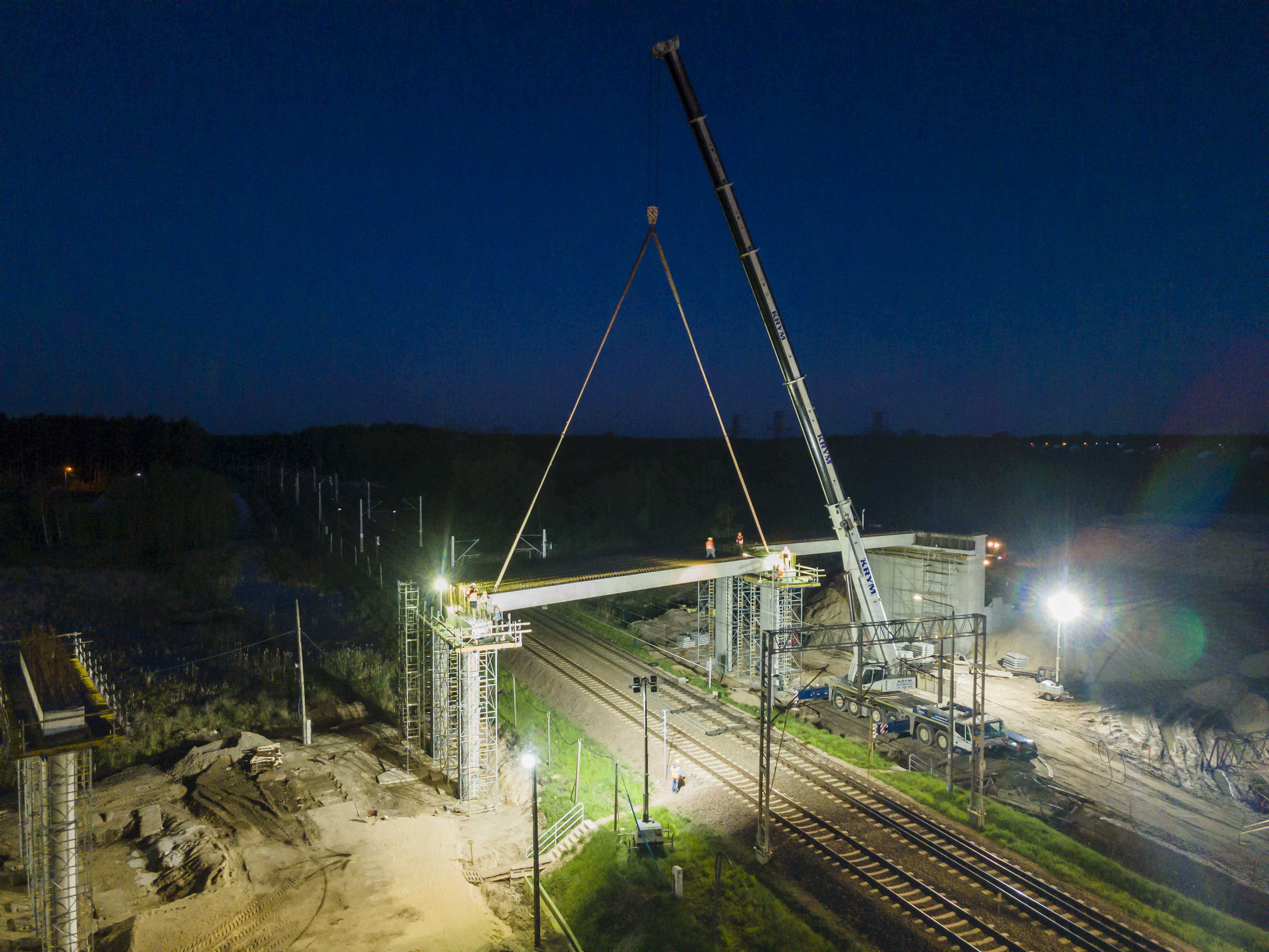 E75, Rail Baltica, CEF, budowa wiaduktu, zdjęcia nocne
