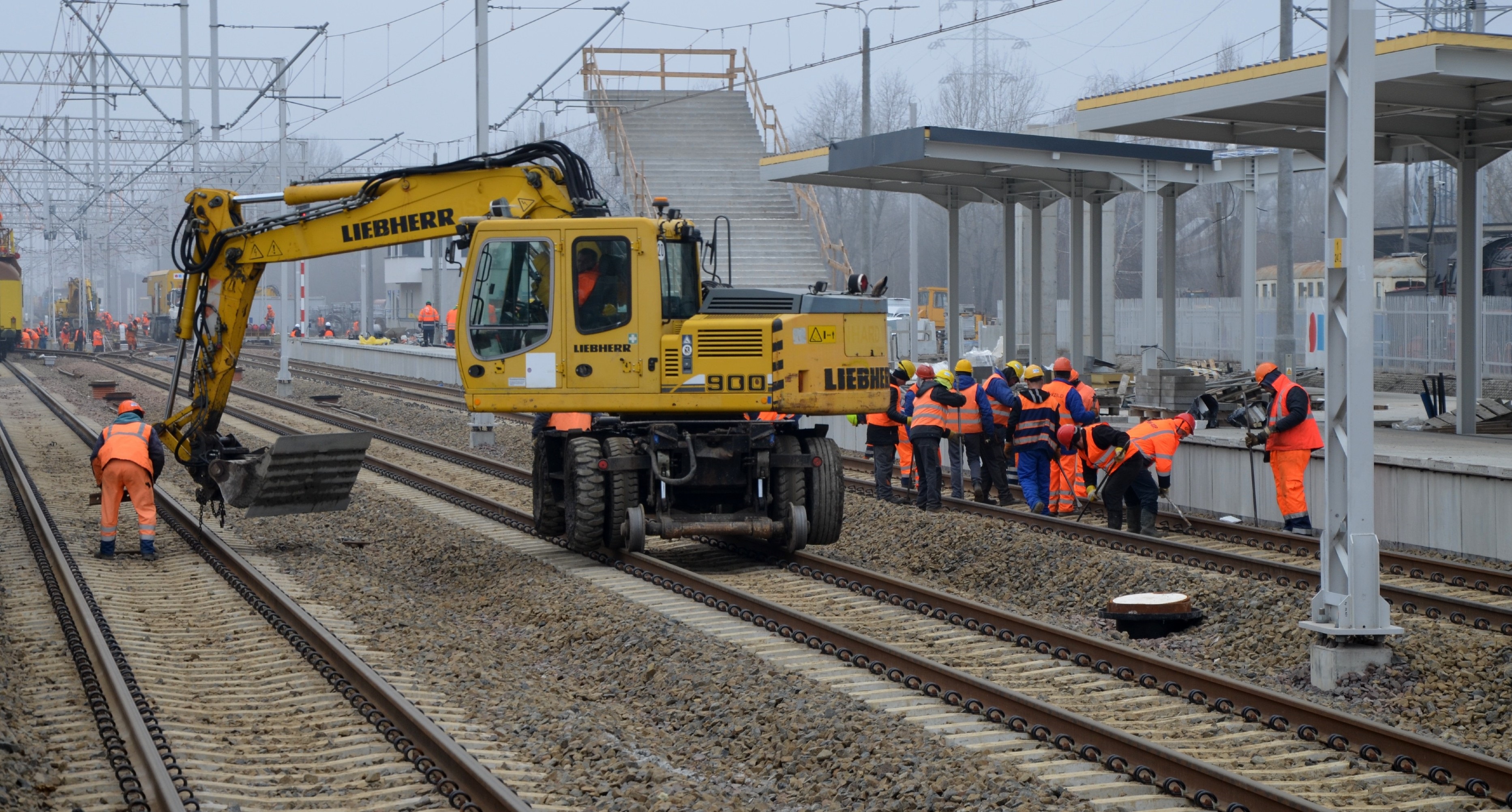 PLK-2021-03-03-Warszawa-Glowna-ponownie-dla-podroznych-Warszawa-Glowna-pojazd-dwudrogowy-ora-pracownicy-na-nowych-torach-w-tle-nowy-peron-z-wiata-fot.jpg