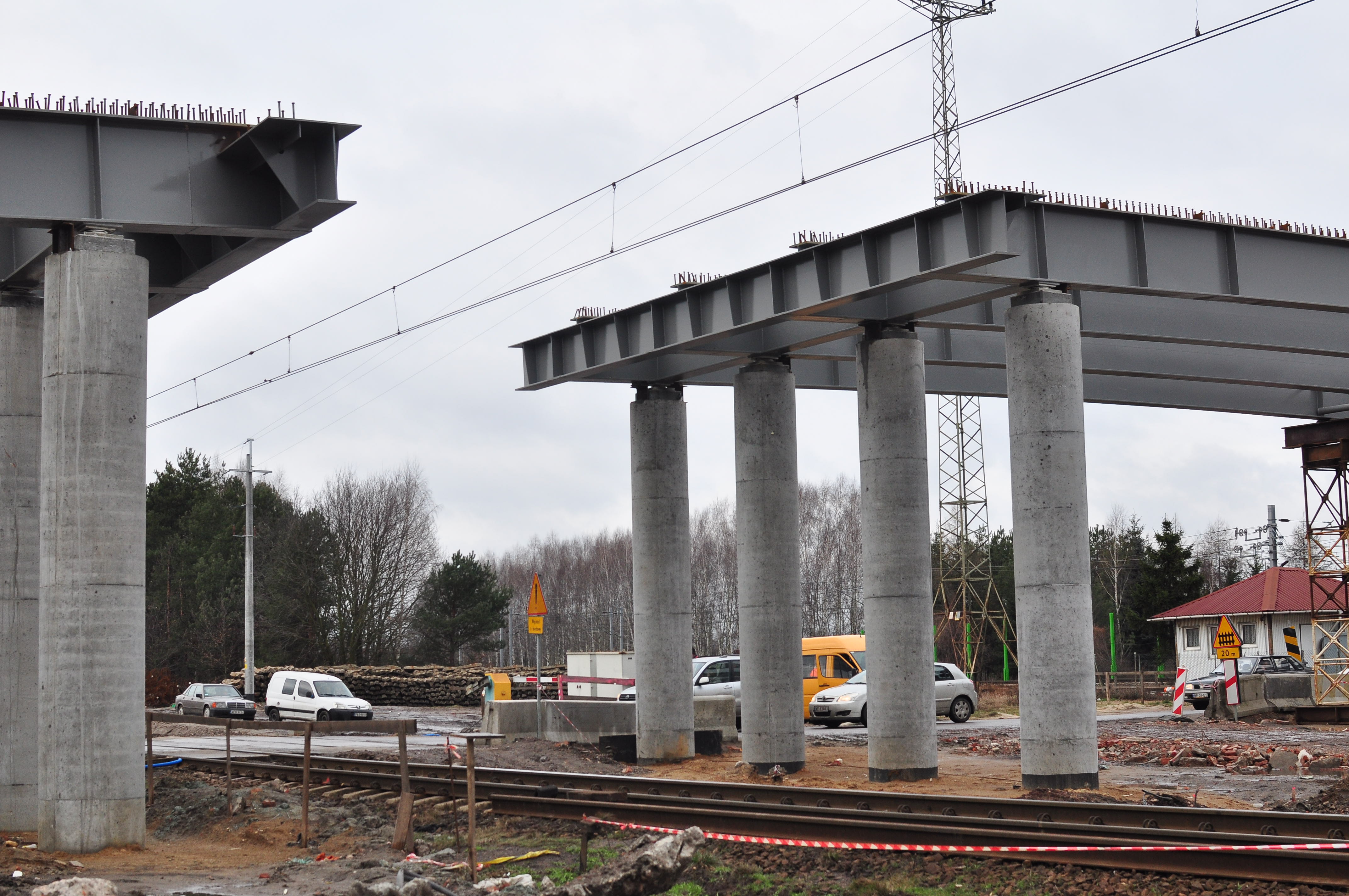 Postęp prac modernizacyjnych na linii kolejowej z Warszawy do Łodzi na odcinku Warszawa – Skierniewice (Miedniewice). Fotografie wykonano w okolicach przystanku Jaktorów i wiaduktu w tejże miejscowości w styczniu 2015 r.