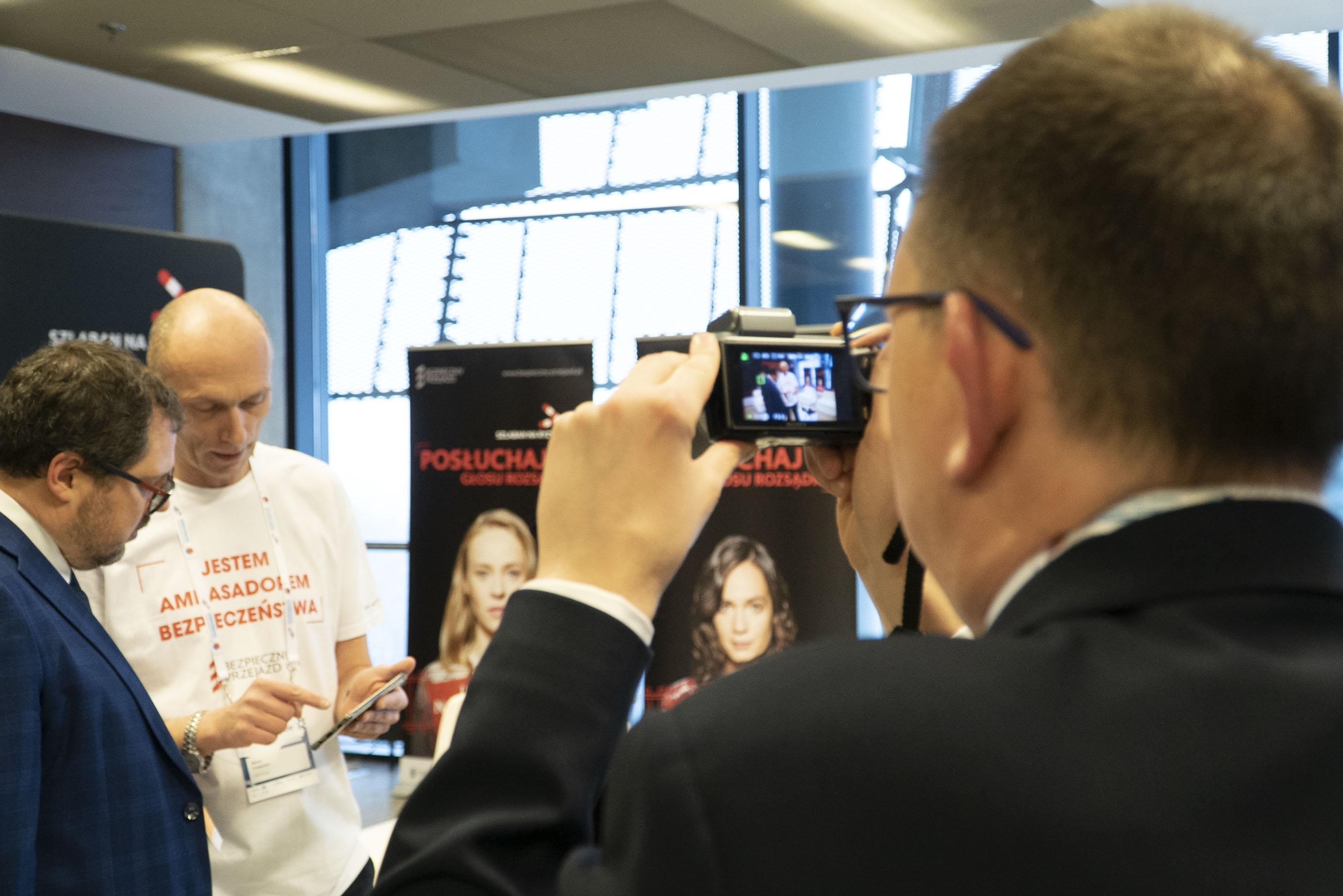 Stoisko kampanii społecznej "Bezpieczny przejazd..." na II Kongresie Rozwoju Kolei, który odbył się 29 stycznia 2020 r. na Stadionie PGE Narodowym.