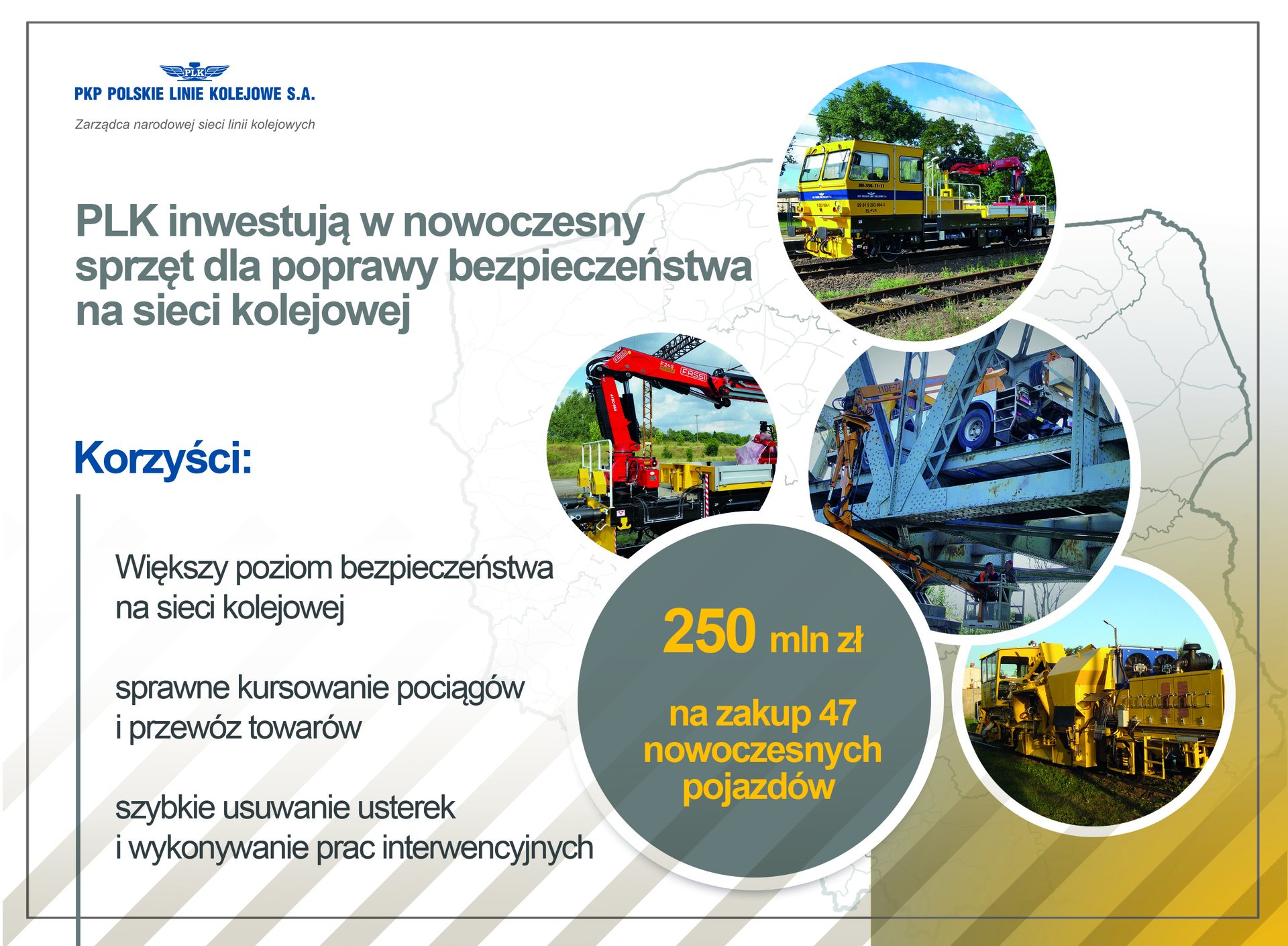 Będą szybsze dojazdy na miejsca napraw, sprawne usuwanie usterek, mechaniczne odśnieżanie torów. Kolejne 6 wózków motorowych z oprzyrządowaniem da możliwość profesjonalnego dbania o bezpieczeństwo na torach. PKP Polskie Linie Kolejowe S.A. podpisały kolejną umowę na zakup sprzętu w ramach projektu o wartości 250 mln zł, współfinansowanego ze środków POIiŚ. Łącznie to dostawa 47 pojazdów.