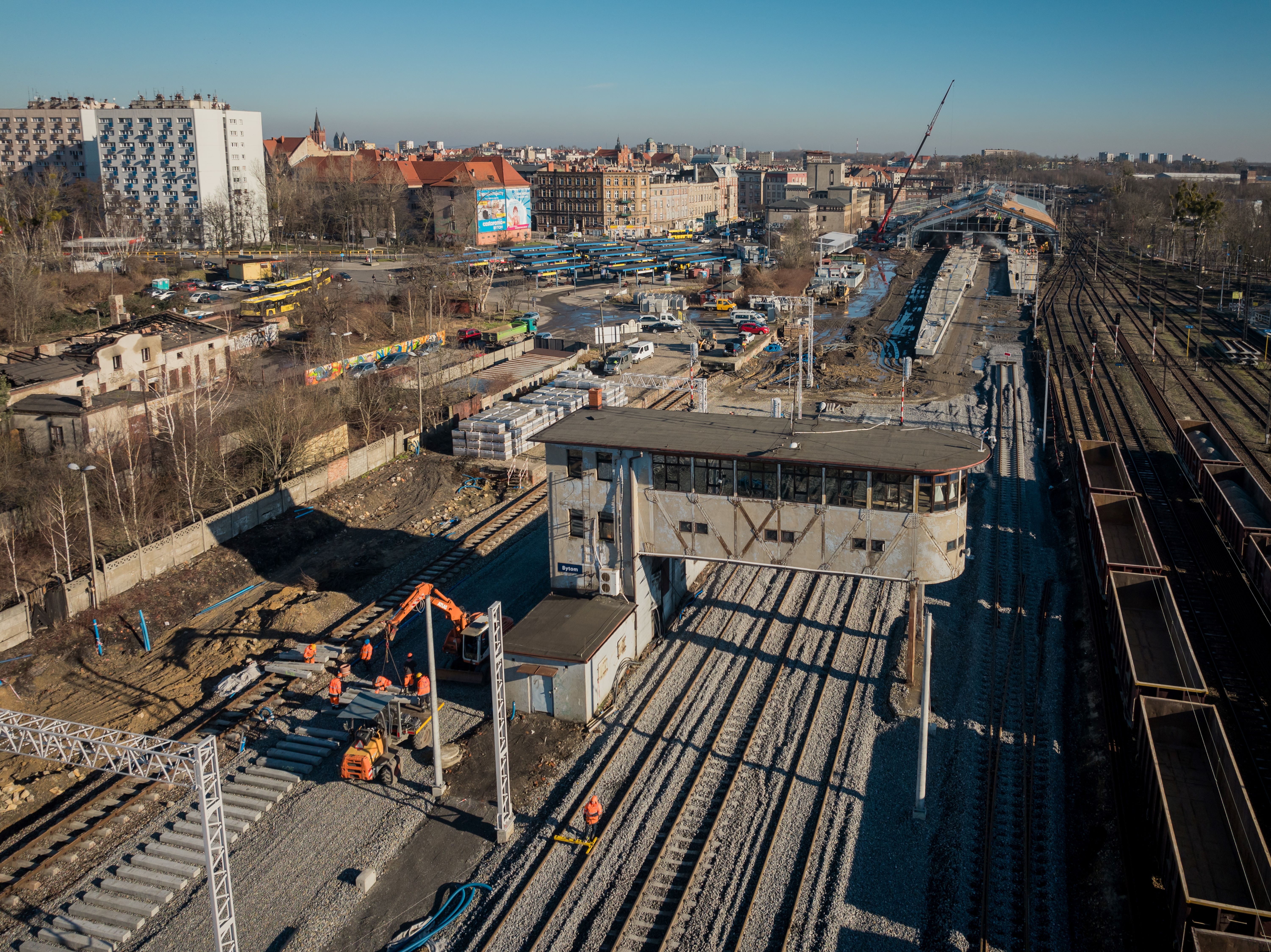 PLK-2024-02-09-Jest-przetarg-na-remont-zabytkowej-nastawni-w-stacji-Bytom-Nastawnia-i-w-tle-hala-peronowa-w-stacji-Bytom-widziane-z-lotu-ptaka-prace-prowadzone-przy-budowie-stacji-fot.jpg