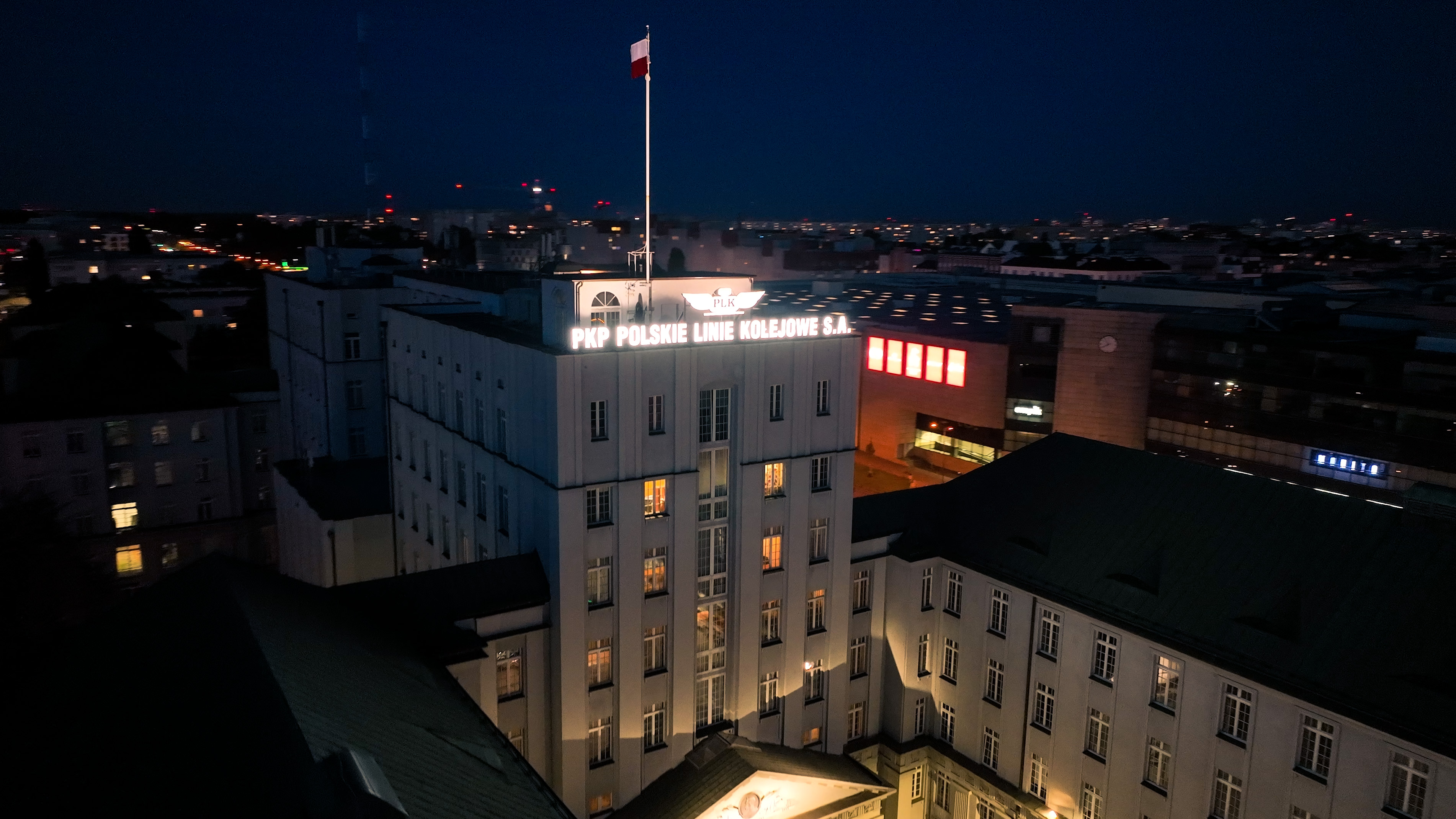 Budynek siedziby PKP Polskich Linii Kolejowych S.A. - fotografie z drona
