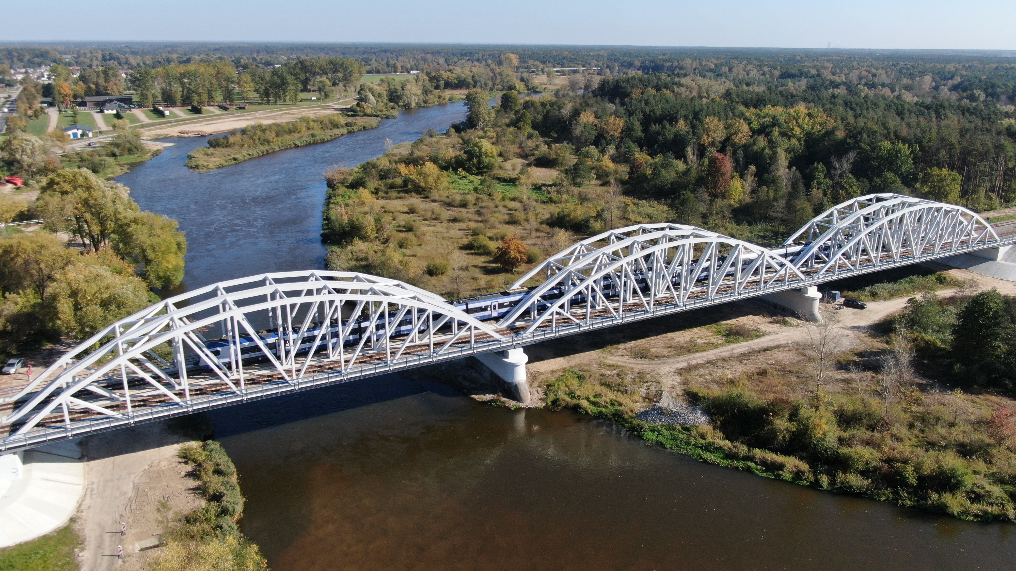 PLK-2023-06-12-Krotsze-podroze-pociagami-miedzy-Radomiem-a-Warszawa-Pociag-jedzie-po-moscie-kolejowym-nad-Pilica-w-Warce-dot.jpg