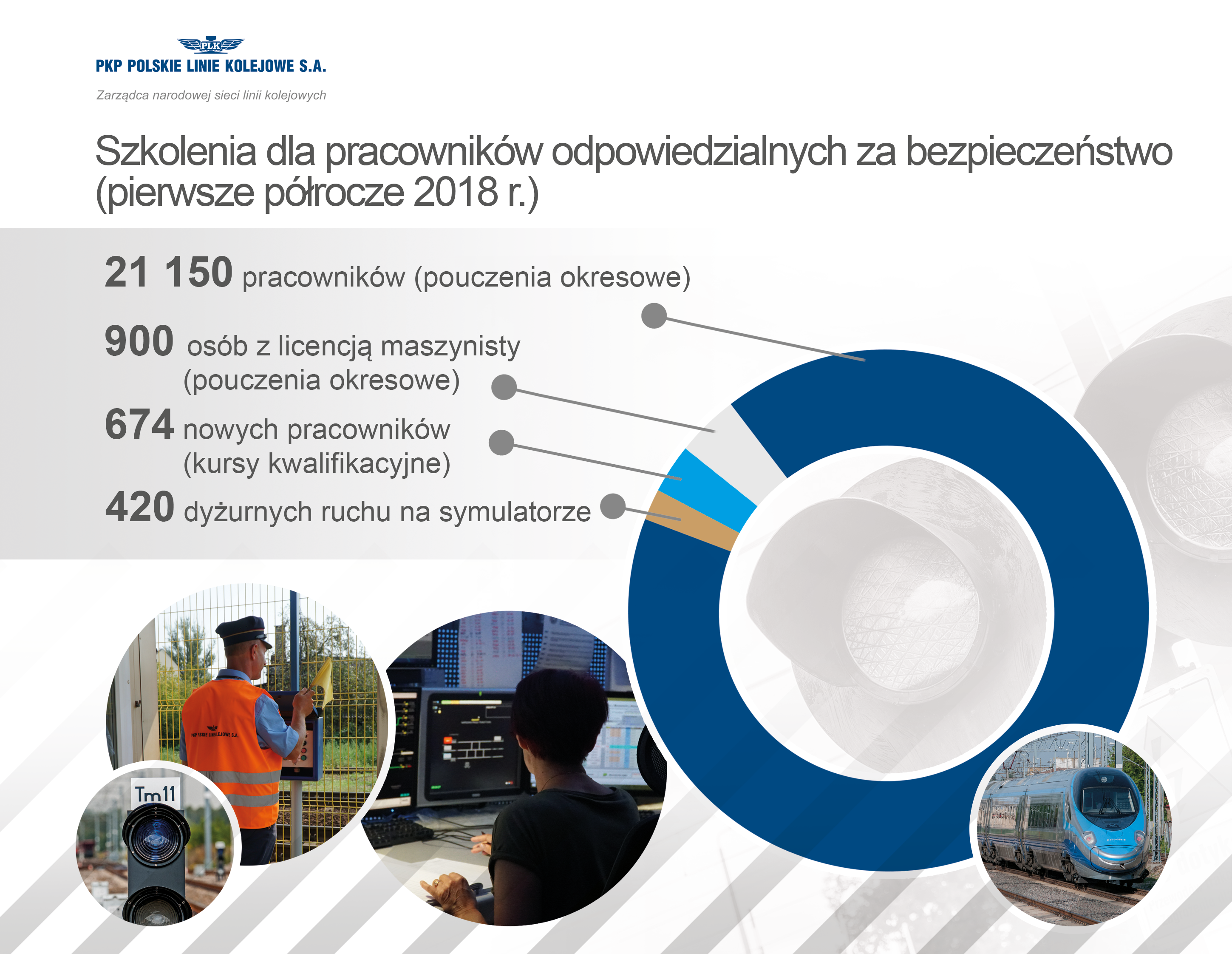 Doskonalenie kwalifikacji pracowników to jedno z działań PKP Polskich Linii Kolejowych S.A. na rzecz bezpieczeństwa ruchu kolejowego. W pierwszej połowie br. ponad 21 000 pracowników odpowiedzialnych za bezpieczne prowadzenia ruchu pociągów przeszło cykliczne szkolenia, ponad 400 dyżurnych ruchu przeszkolono na specjalnym symulatorze, a blisko 700 nowoprzyjętych pracowników uczestniczyło w kursach kwalifikacyjnych na stanowiska związane z prowadzeniem i bezpieczeństwem ruchu kolejowego.