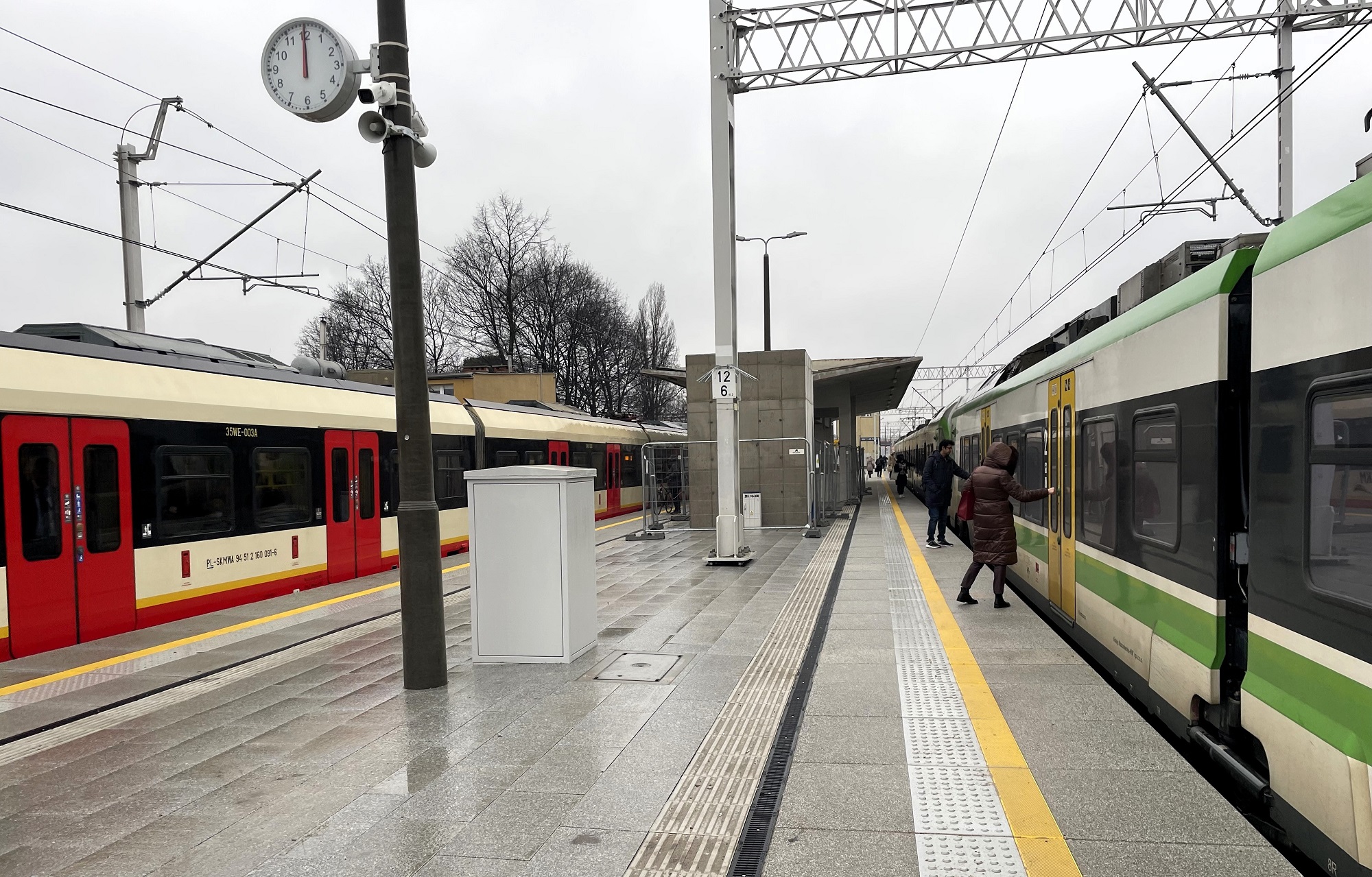 PLK-2023-02-21-Blizej-lepszych-podrozy-na-linii-otwockiej-Pasazerowie-na-peronie-przystanku-Warszawa-Wawer-widac-2-pociagi-fot.jpg