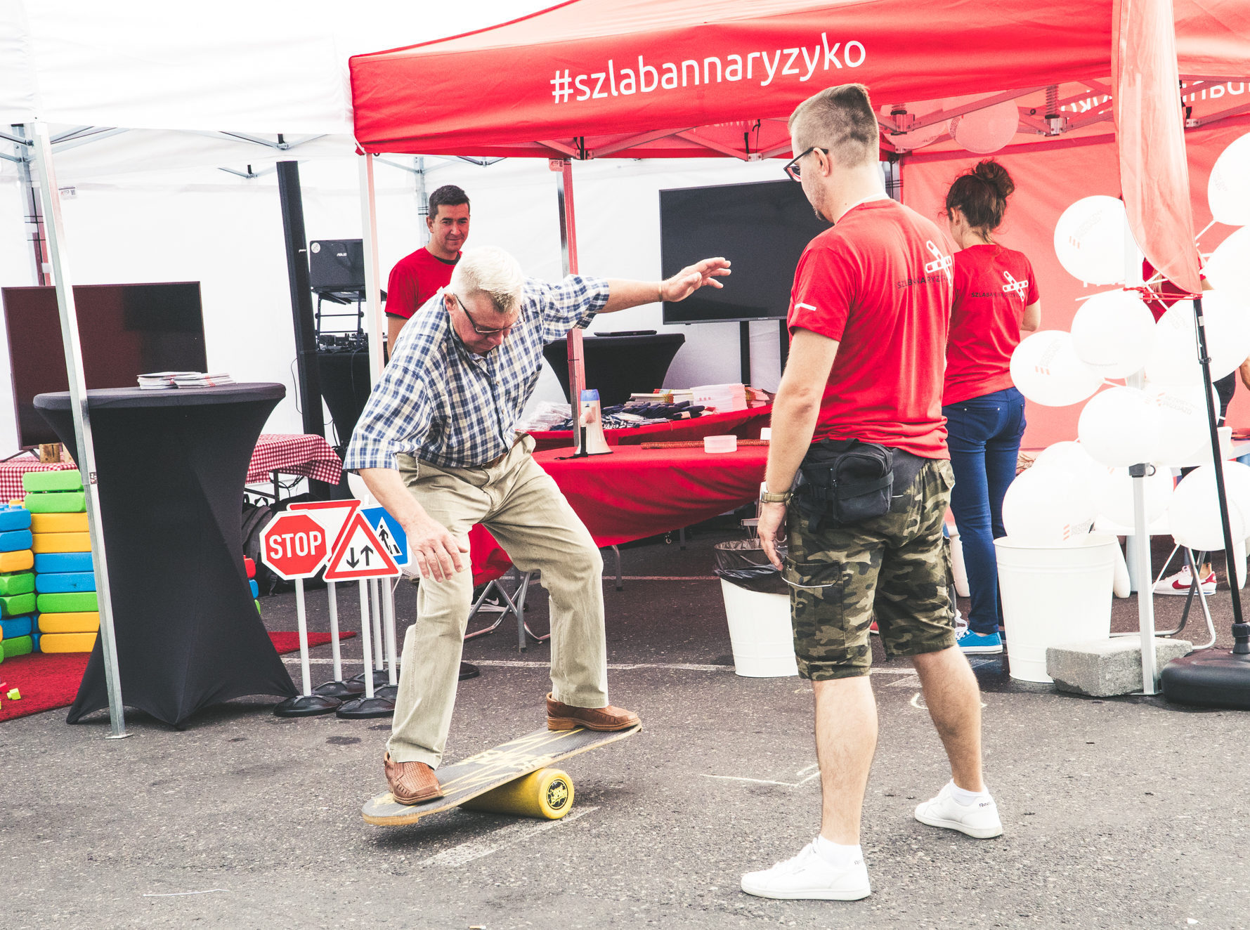 Stoisko promocyjne kampanii społecznej "Bezpieczny przejazd..." na Moto Safety Day, organizowanym w Gdyni 27 lipca 2019 r.
