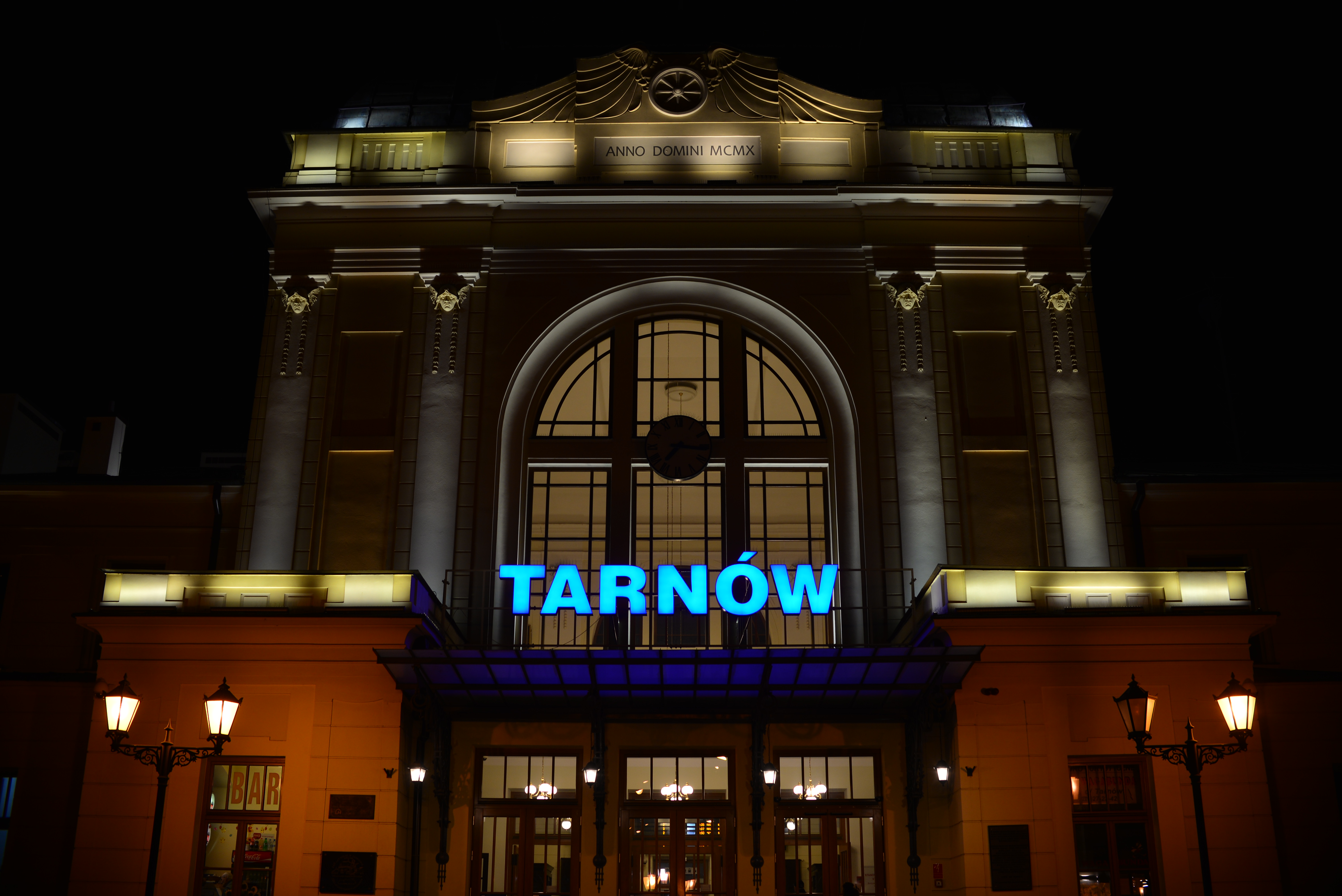 dworzec, dworzec kolejowy, Tarnów, noc