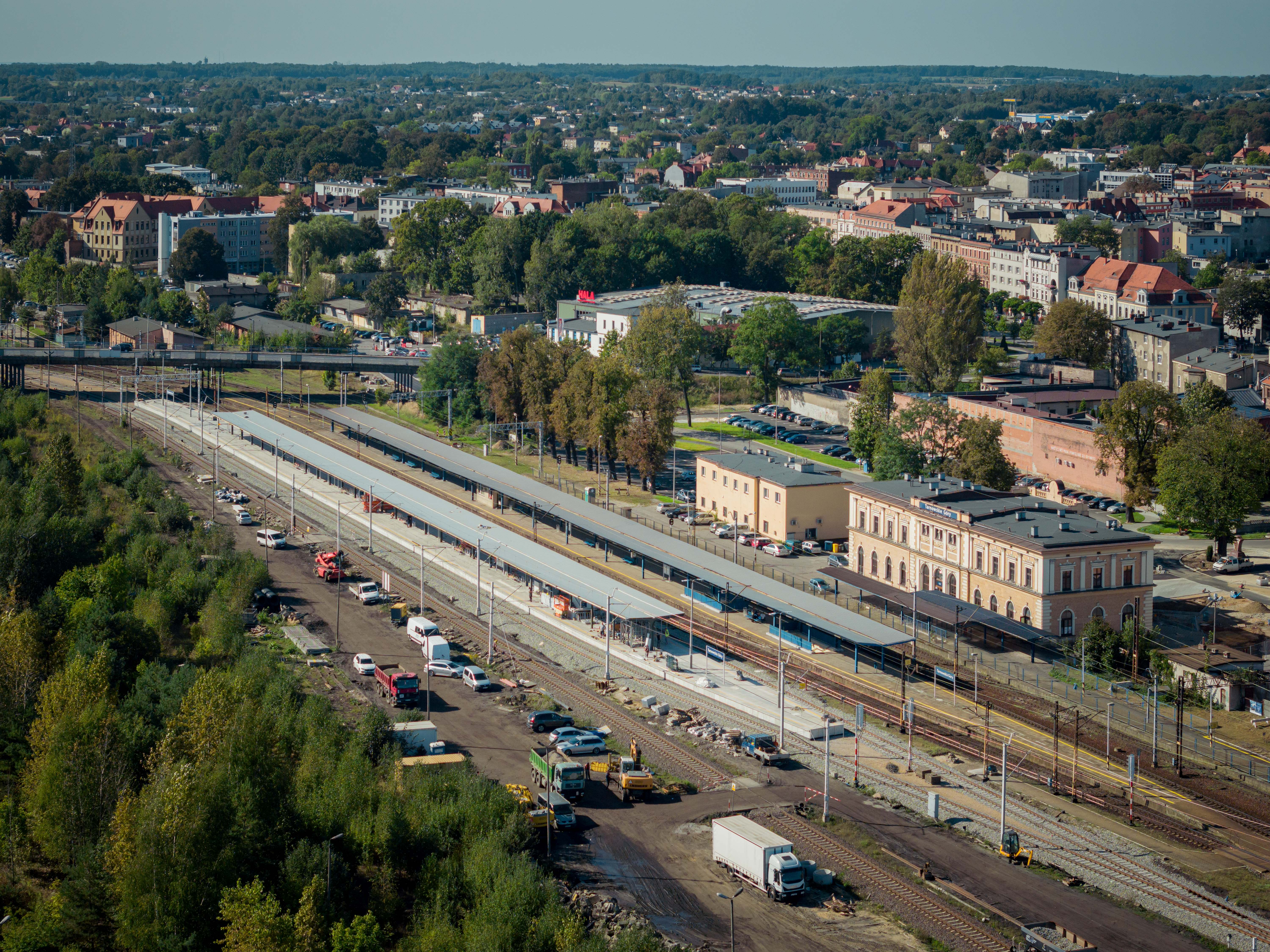 PLK-2023-10-09-Z-wygodnego-peronu-w-Tarnowskich-Gorach-do-portu-lotniczego-Katowice-Airport-Stacja-Tarnowskie-Gory-nowy-peron-widziany-z-lotu-ptaka-fot.jpg