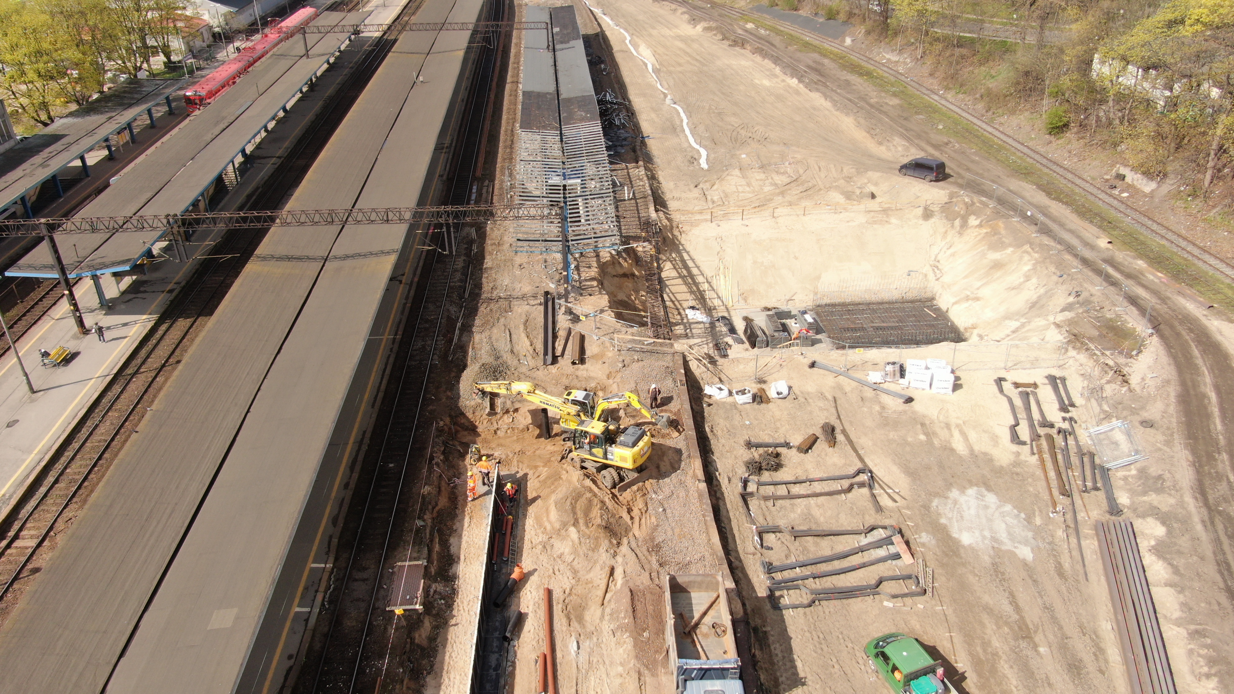 2022-04 Roboty przy budowie przejścia podziemnego na stacji Olsztyn Główny