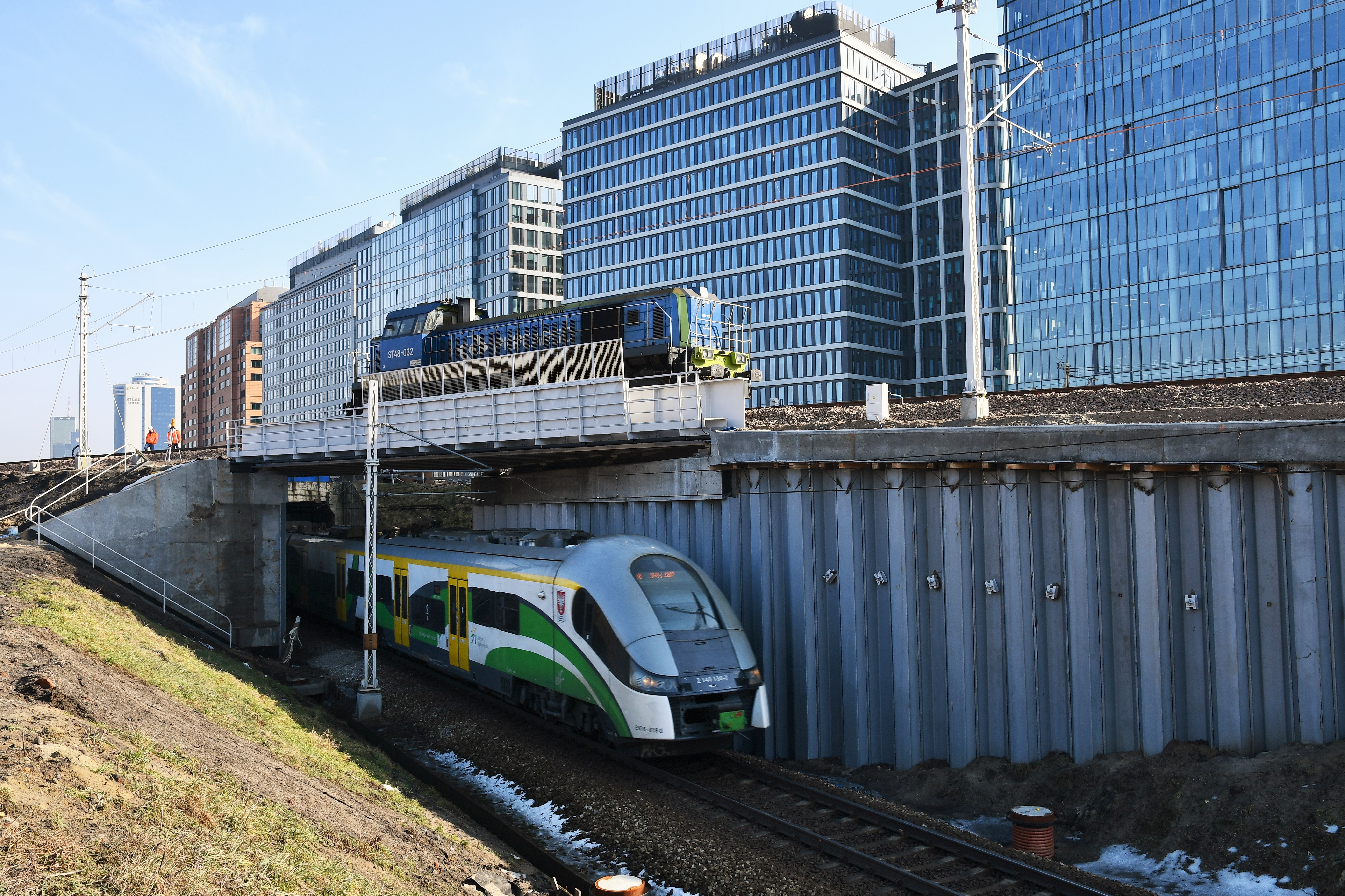 Stojąca 120-tonowa lokomotywa sprawdziła nowy kolejowy wiadukt na stacji Warszawa Główna. Obiekt pozwoli na bezkolizyjny przejazd pociągów nad dalekobieżną linią średnicową.