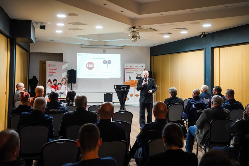 Warsztat dla ośrodków szkolenia kierowców realizowany w Krośnie w dn. 1.12.2022 r. w ramach kampanii społecznej "Bezpieczny Przejazd".