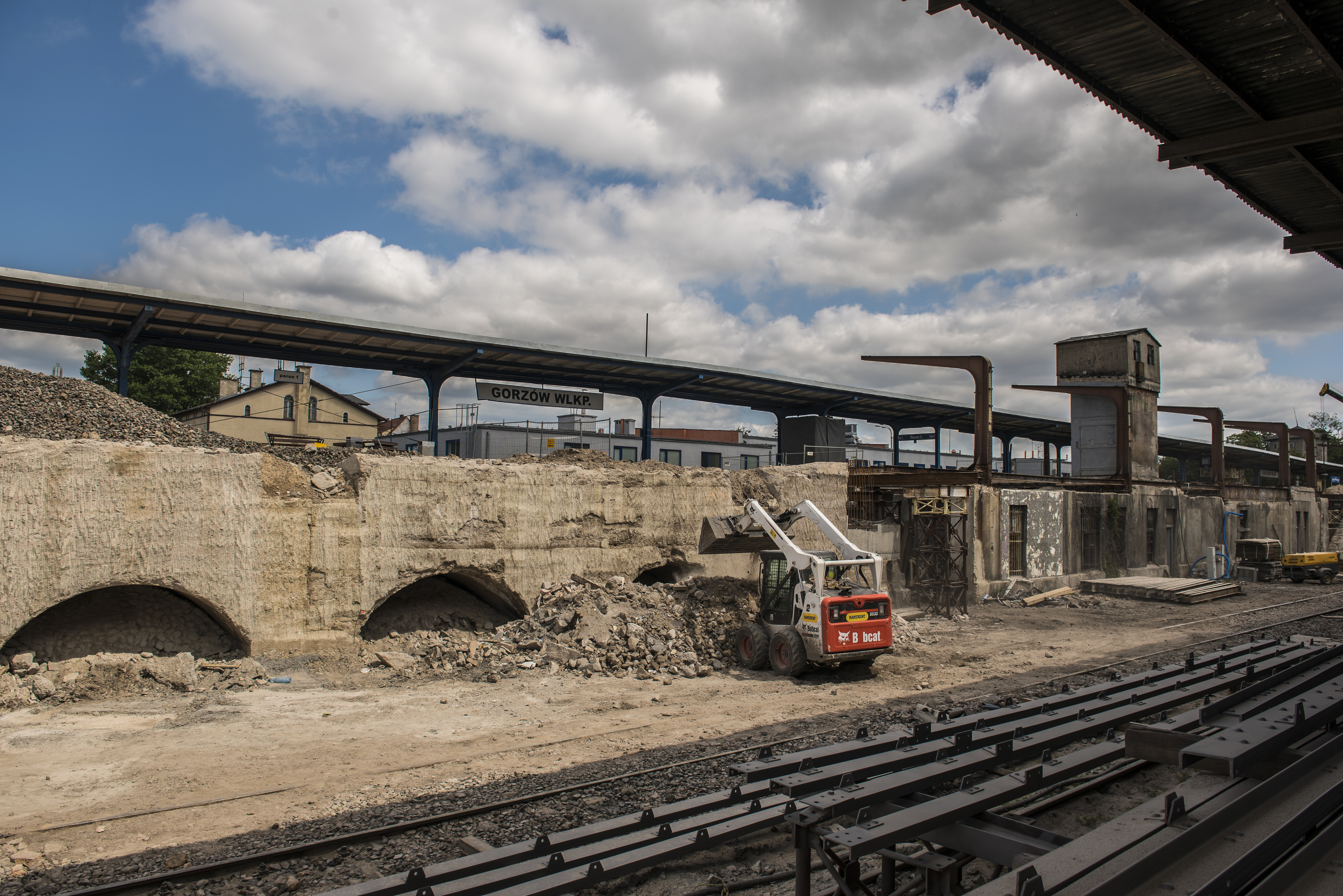 Gorzów Wielkopolski - modernizacja stacji - mur oporowy peronu, foto: lipiec 2017 r.