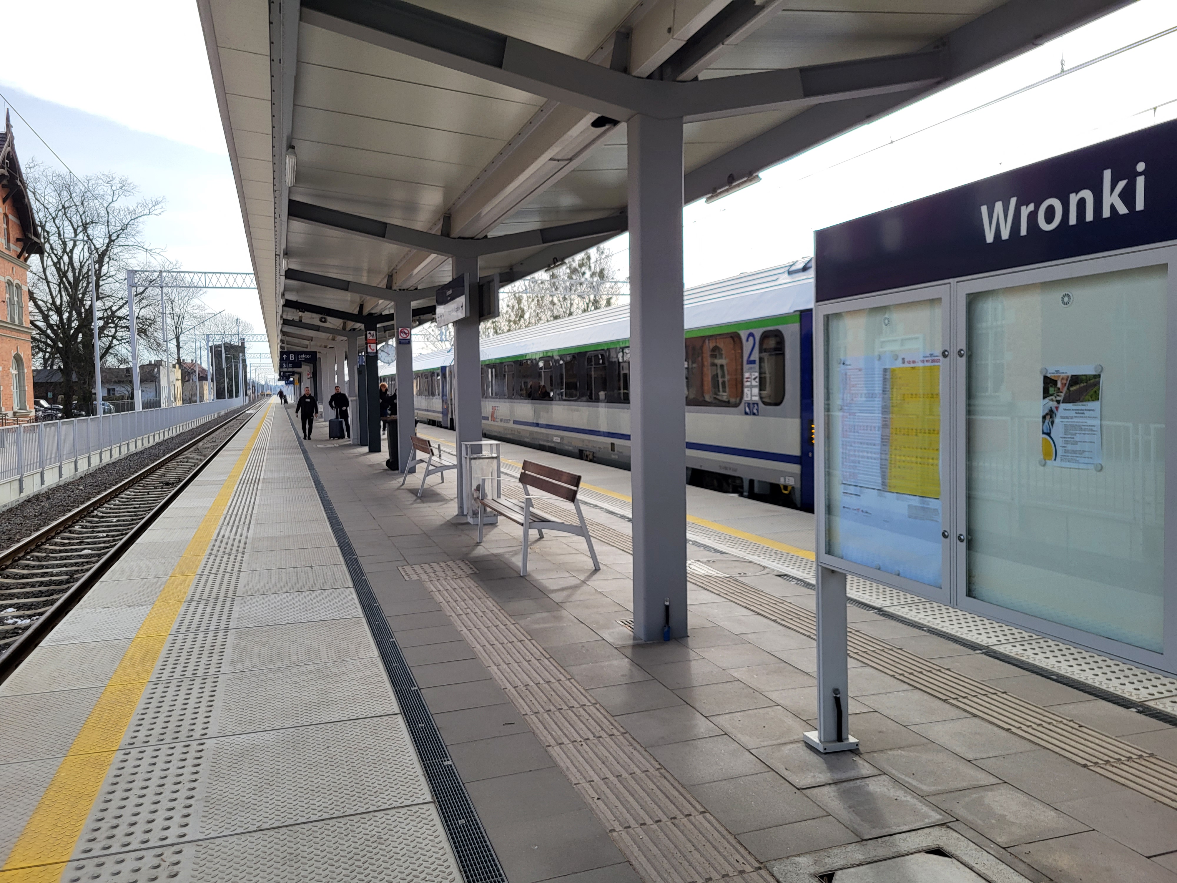 PLK-2023-03-30-Blizej-do-kolei-we-Wronkach-PLK-SA-wybuduja-nowy-przystanek-Tablica-z-nazwa-stacji-na-peronie-we-Wronkach-w-tle-pociag-fot.jpg