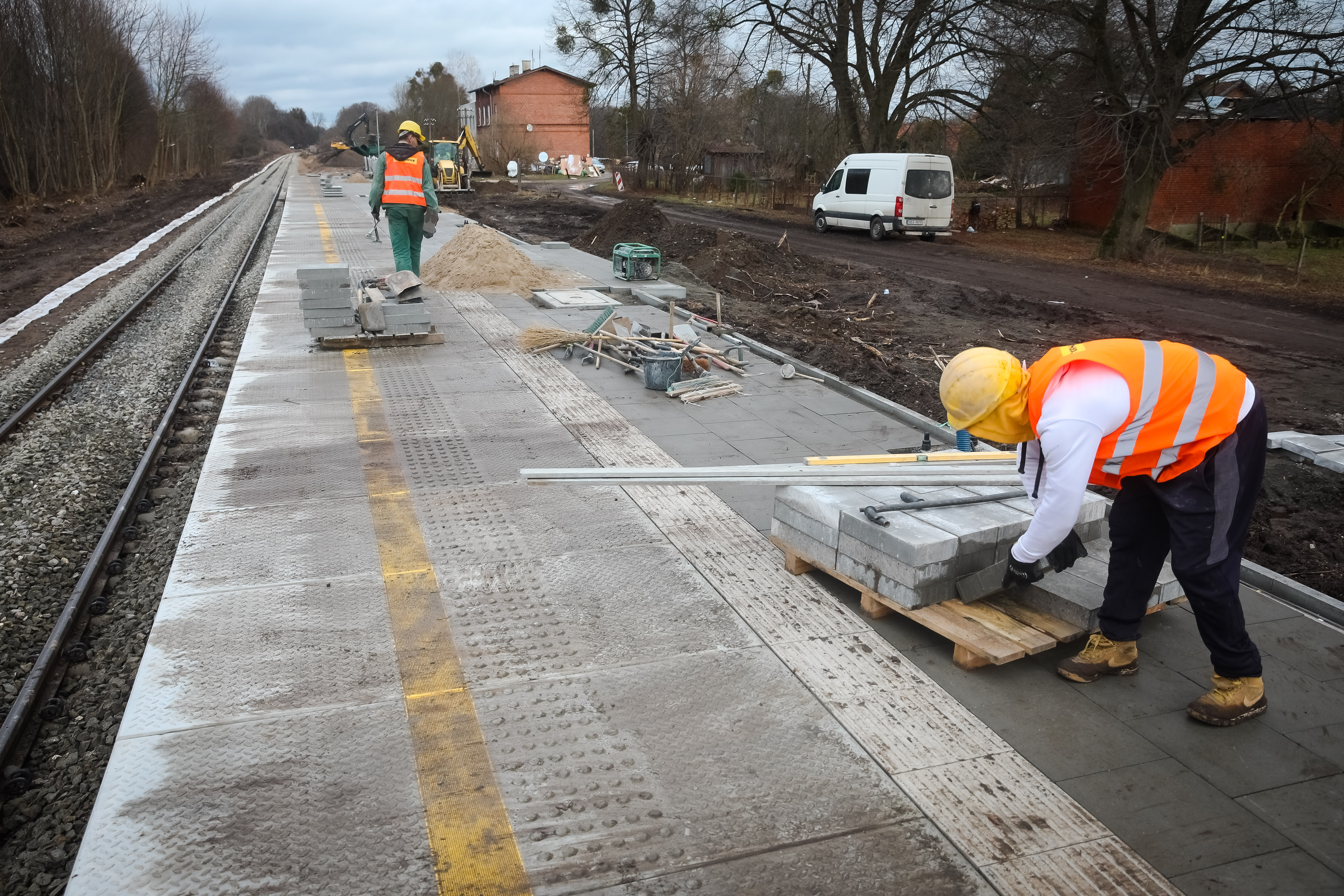 PLK-Prace-na-linii-nr-220-Olsztyn-Gutkowo-Dobre-Miasto-Pracownicy-ukladaja-nawierzchnie-peronu-na-przystanku-Bukwald-fot.jpg