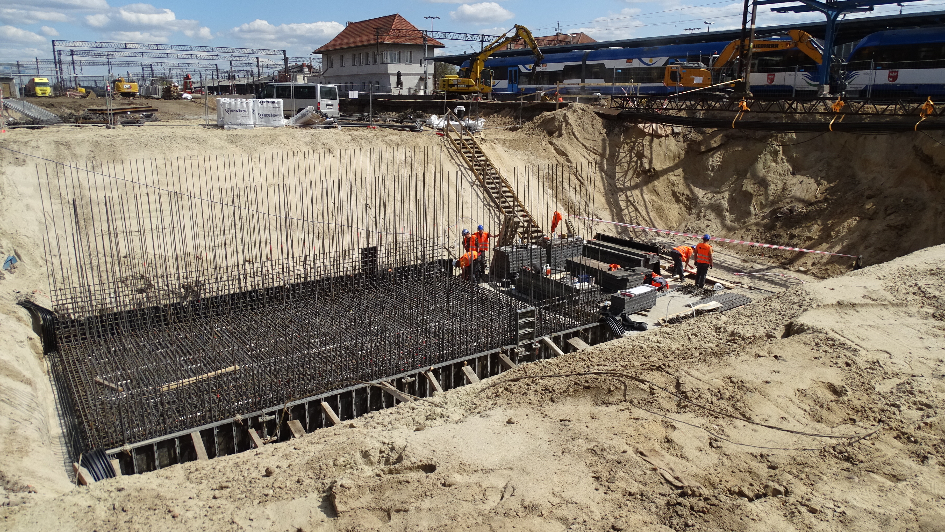 2022-04 Roboty przy budowie przejścia podziemnego na stacji Olsztyn Główny