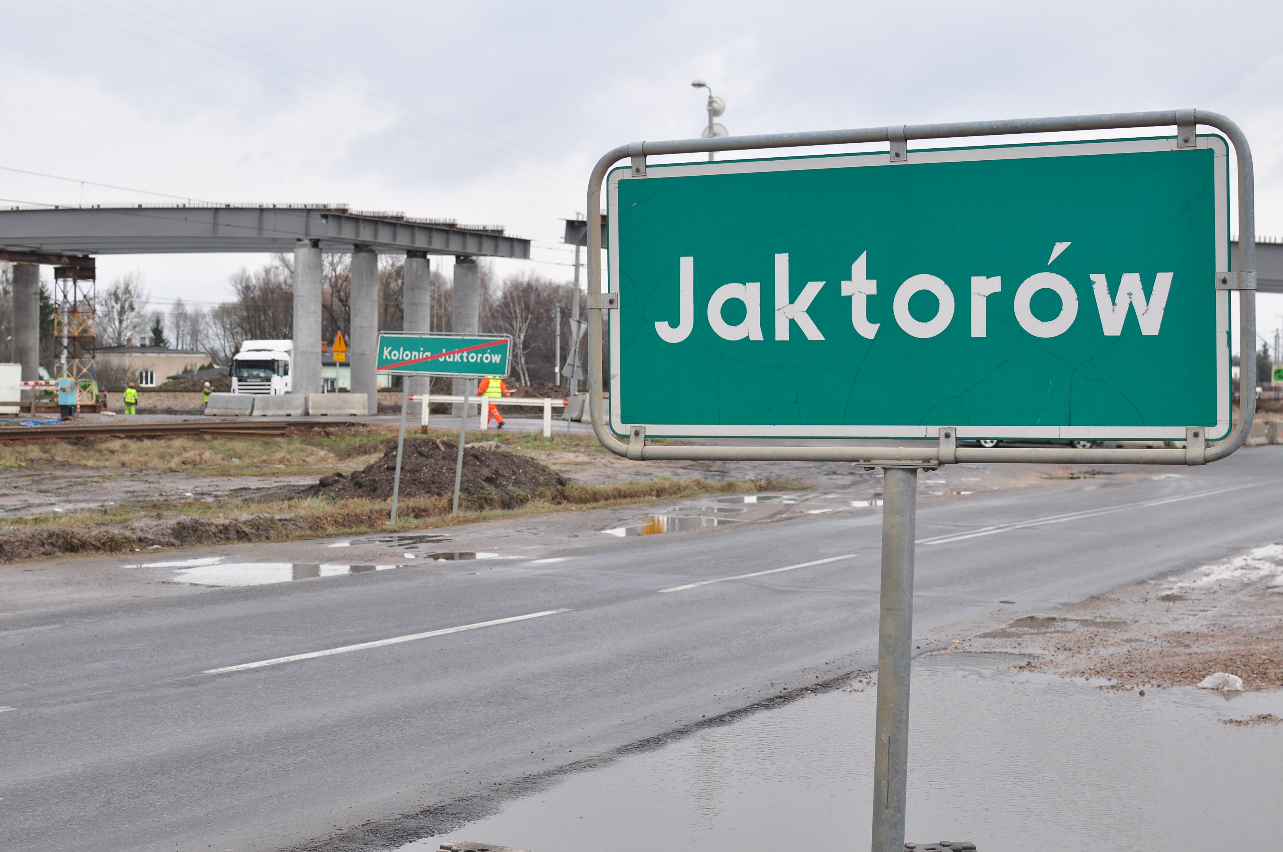 Postęp prac modernizacyjnych na linii kolejowej z Warszawy do Łodzi na odcinku Warszawa – Skierniewice (Miedniewice). Fotografie wykonano w okolicach przystanku Jaktorów i wiaduktu w tejże miejscowości w styczniu 2015 r.