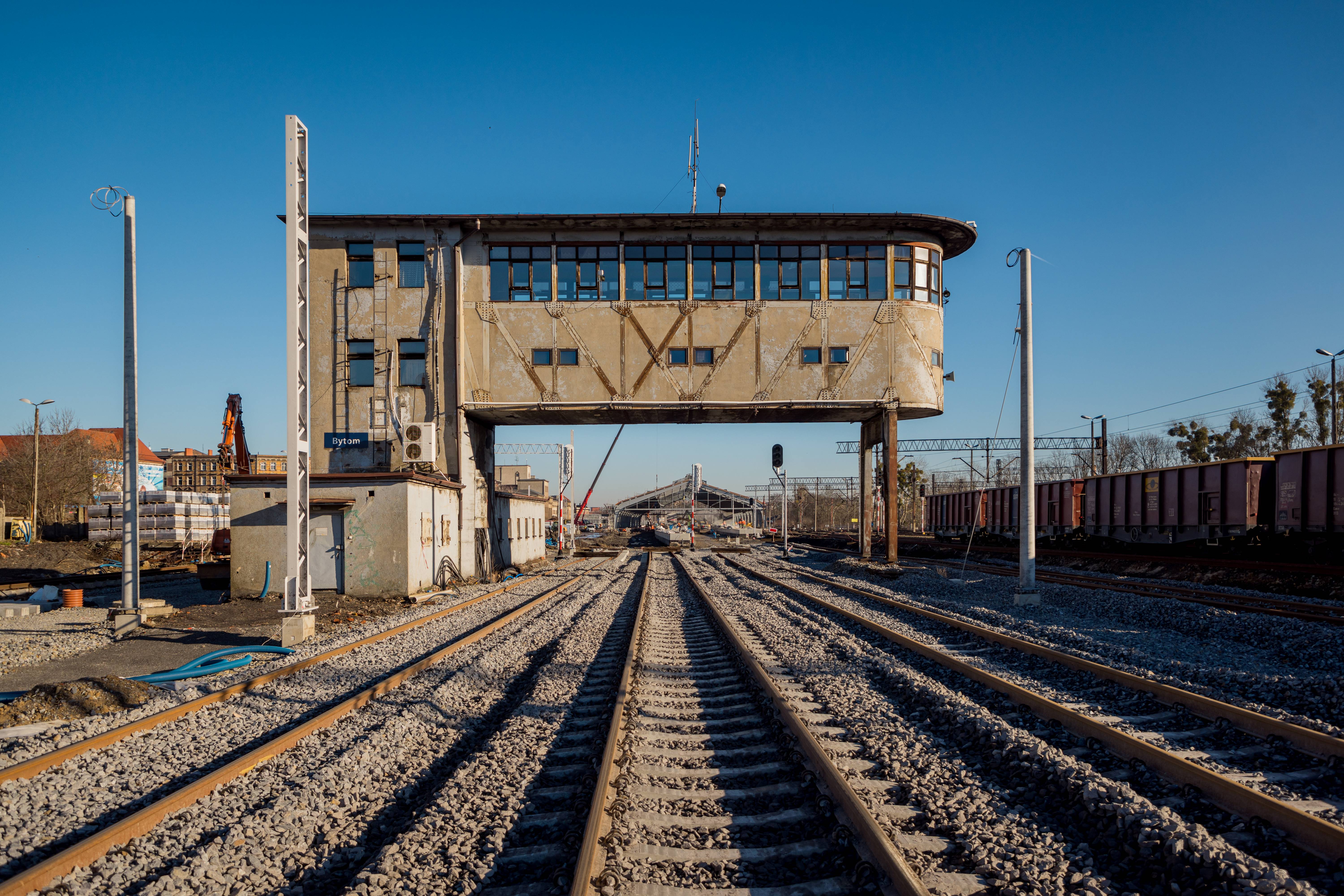 PLK-2024-03-29-Zabytkowa-nastawnia-w-stacji-Bytom-odzyska-dawny-blask-Nastawnia-bramowa-w-Bytomiu-w-tle-przebudowywana-stacja-fot.jpg