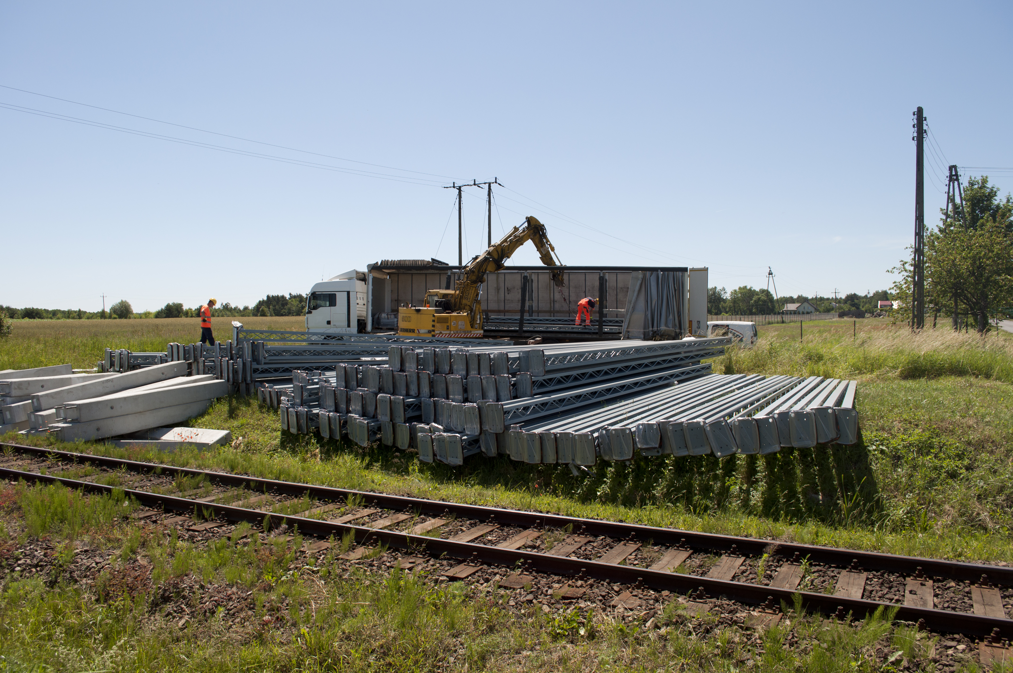 PLK 2018-06 zdjęcia z trasy LK146 10 06 2018 Rafał Kalabiński – 012 – rozładunek słupów okolice 35km.jpg