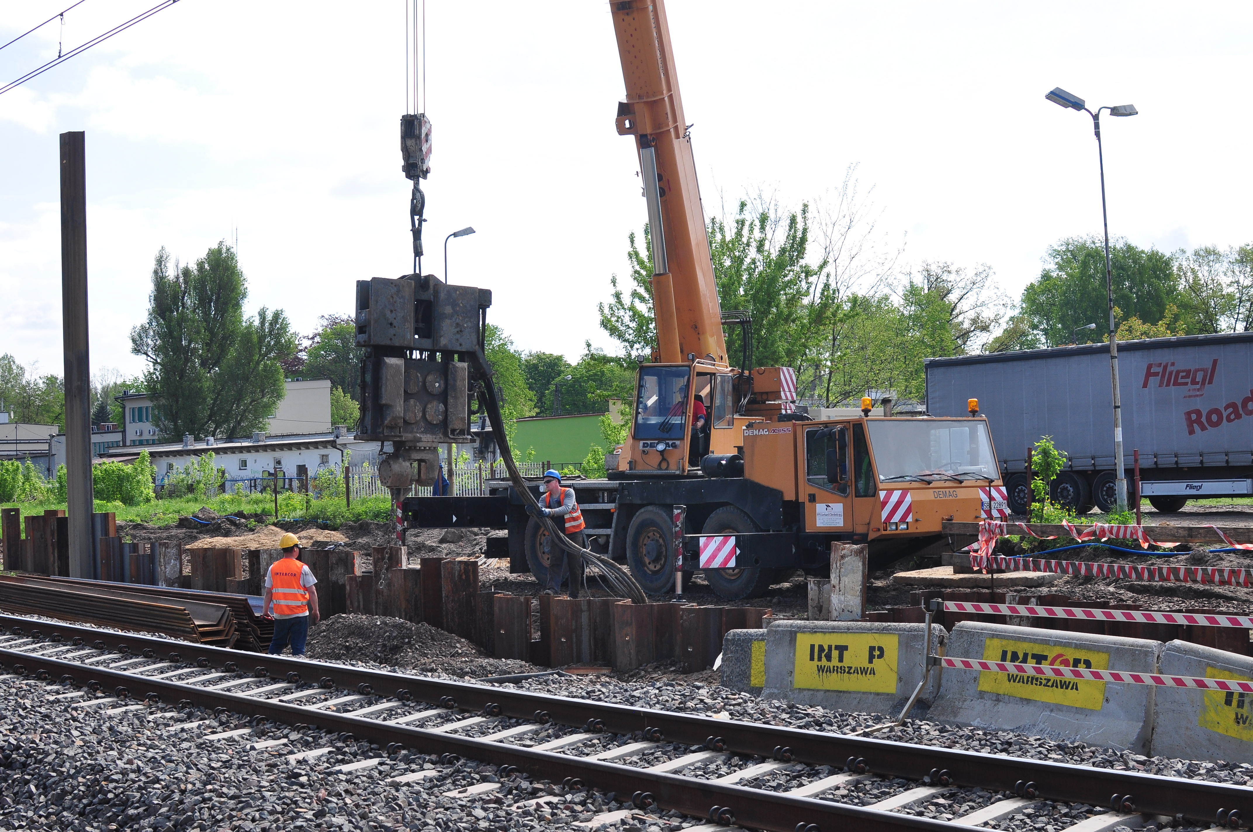 Postęp prac modernizacyjnych na linii kolejowej z Warszawy do Łodzi na odcinku Warszawa – Skierniewice (Miedniewice). Fotografie wykonano na stacji kolejowej w Jaktorowie w maju 2015 r.