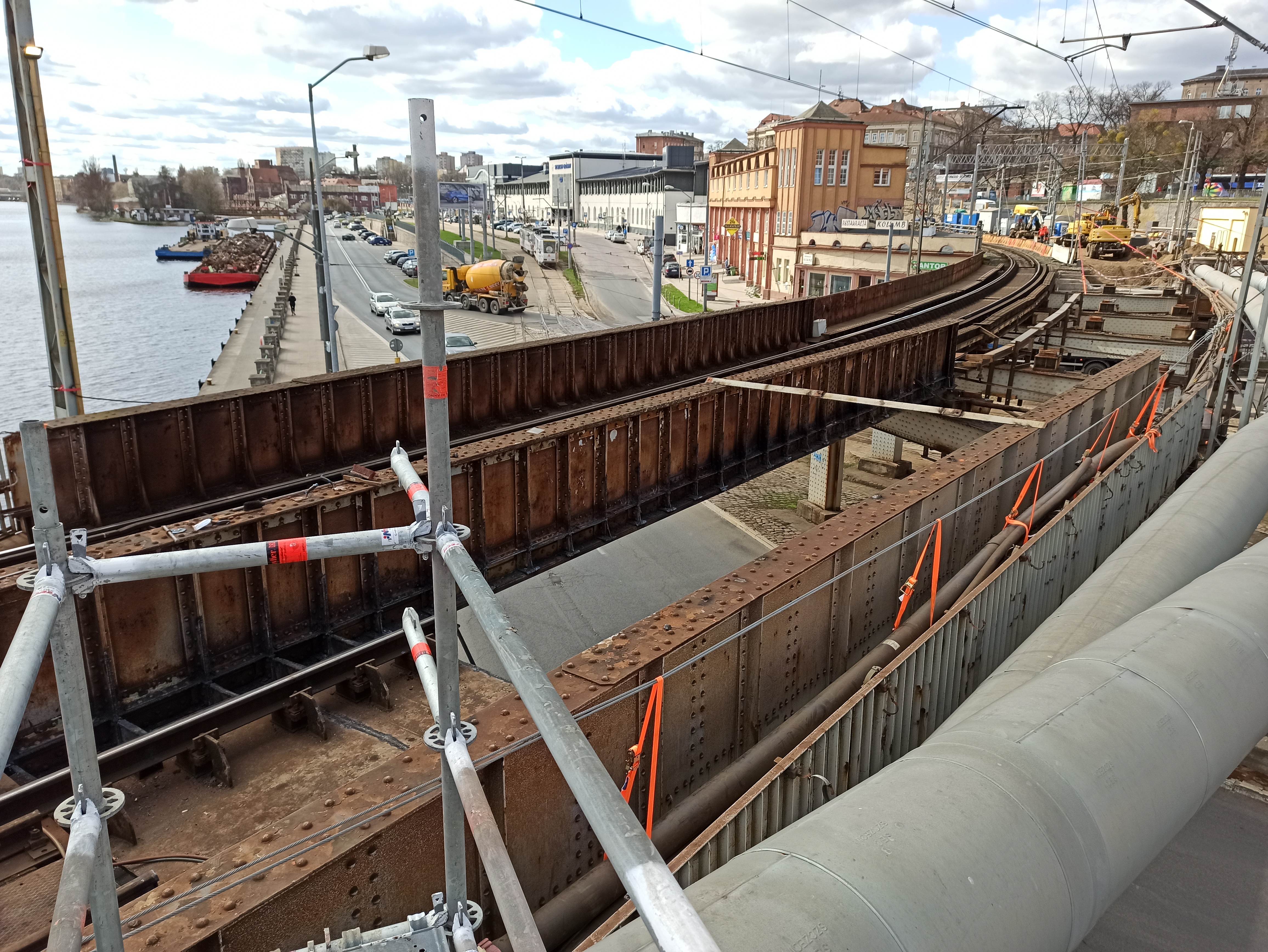 Obok kursujących pociągów na wiadukcie kolejowym nad ul. Kolumba przy stacji Szczecin Główny zdemontowano stare przęsła. Przygotowywana jest nowa konstrukcja. Remont wiaduktu oraz przyległego muru oporowego zwiększy bezpieczeństwo ruchu kolejowego i drogowego. Poprawi się estetyka obiektów i otoczenia. PKP Polskie Linie Kolejowe S.A. realizują prace warte ponad 10 mln zł ze środków własnych.
