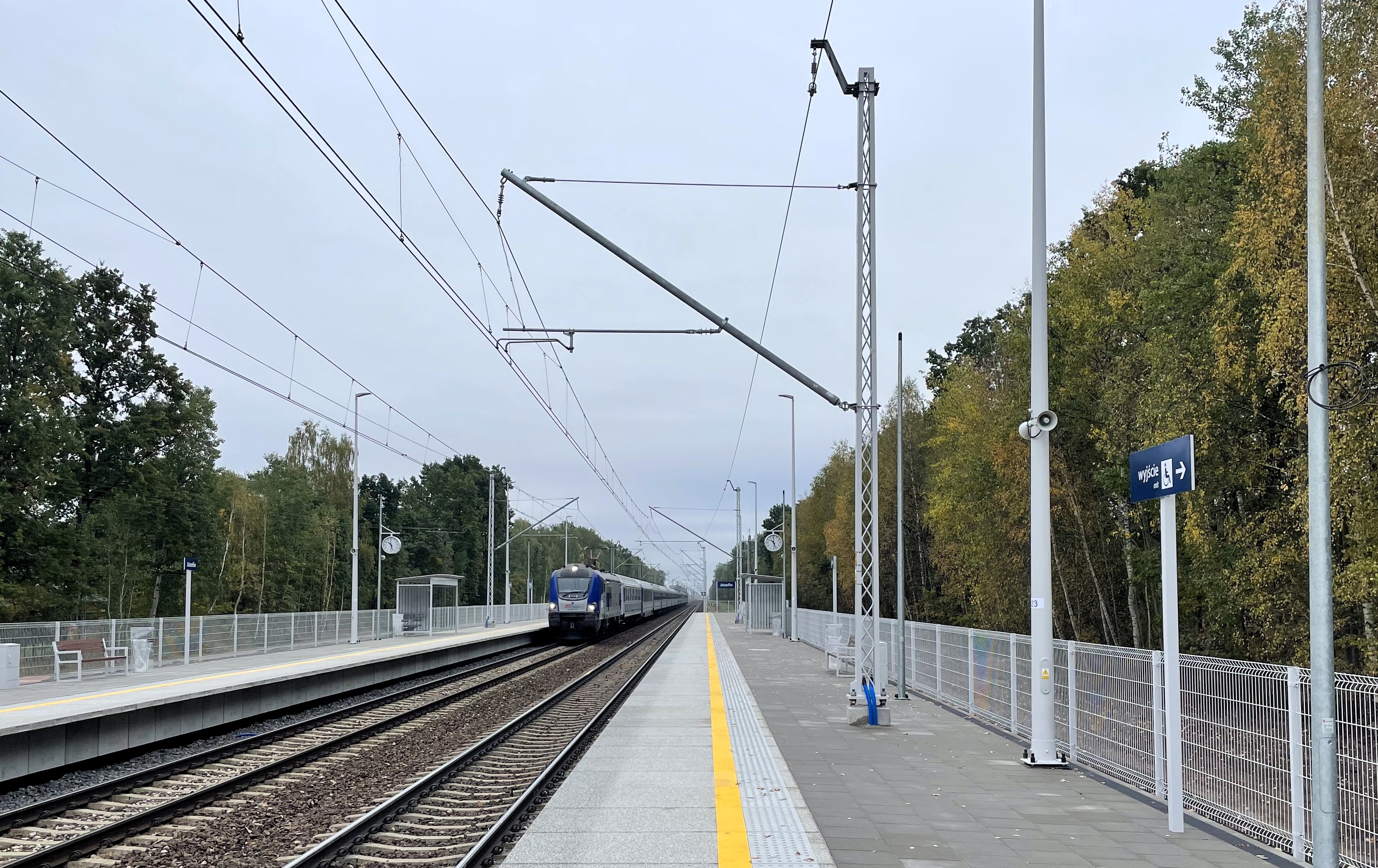 PLK-2023-10-13-Mazowieckie-Nowy-przystanek-w-Jozefinie-zwiekszy-dostep-do-kolei-Pociag-wjezdza-na-przystanek-w-Jozefinie-widac-tory-peron-i-tablice-informacyjne-fot.jpg