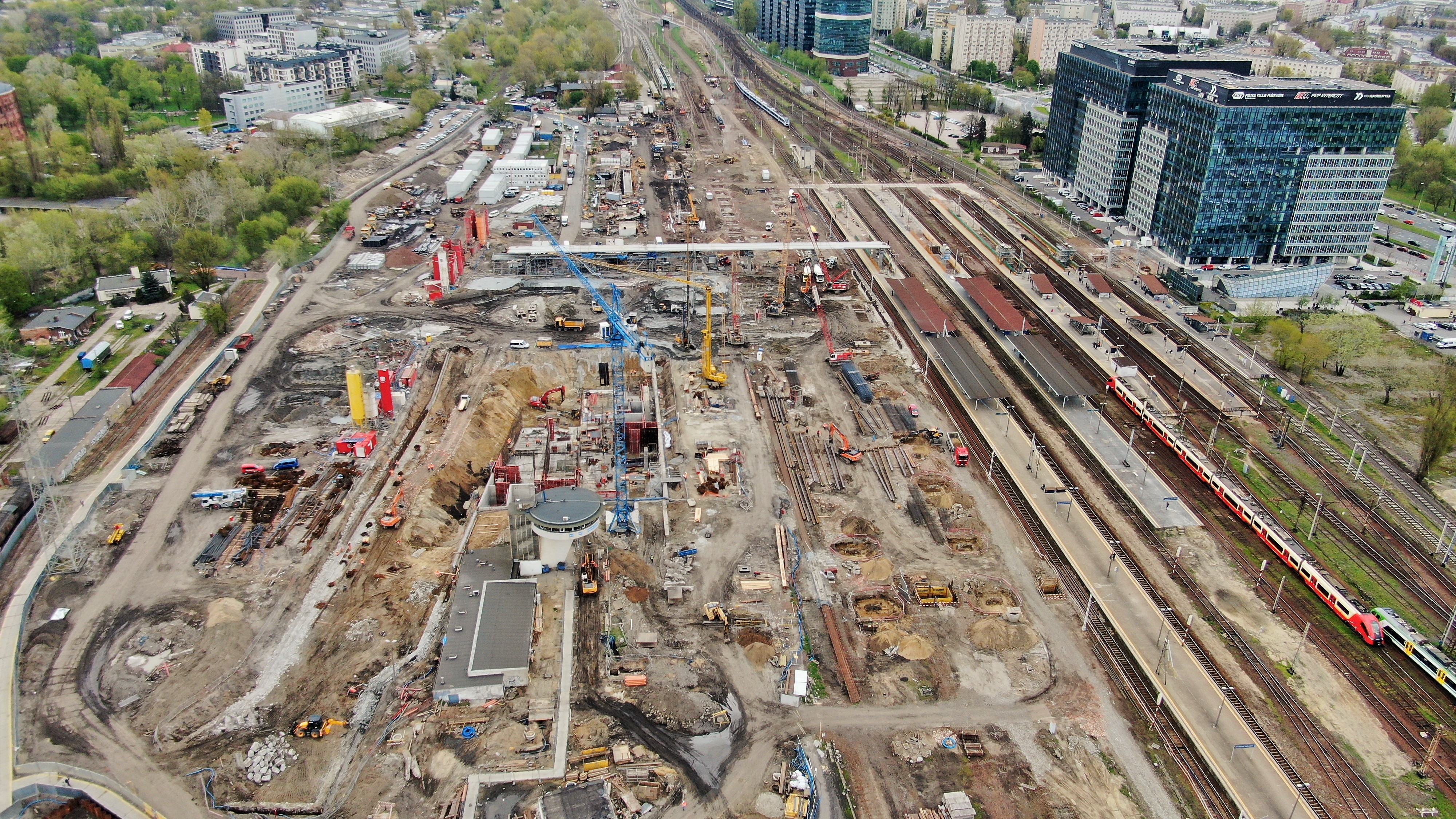 Postęp prac przy budowie kładki nad stacją Warszawa Zachodnia.