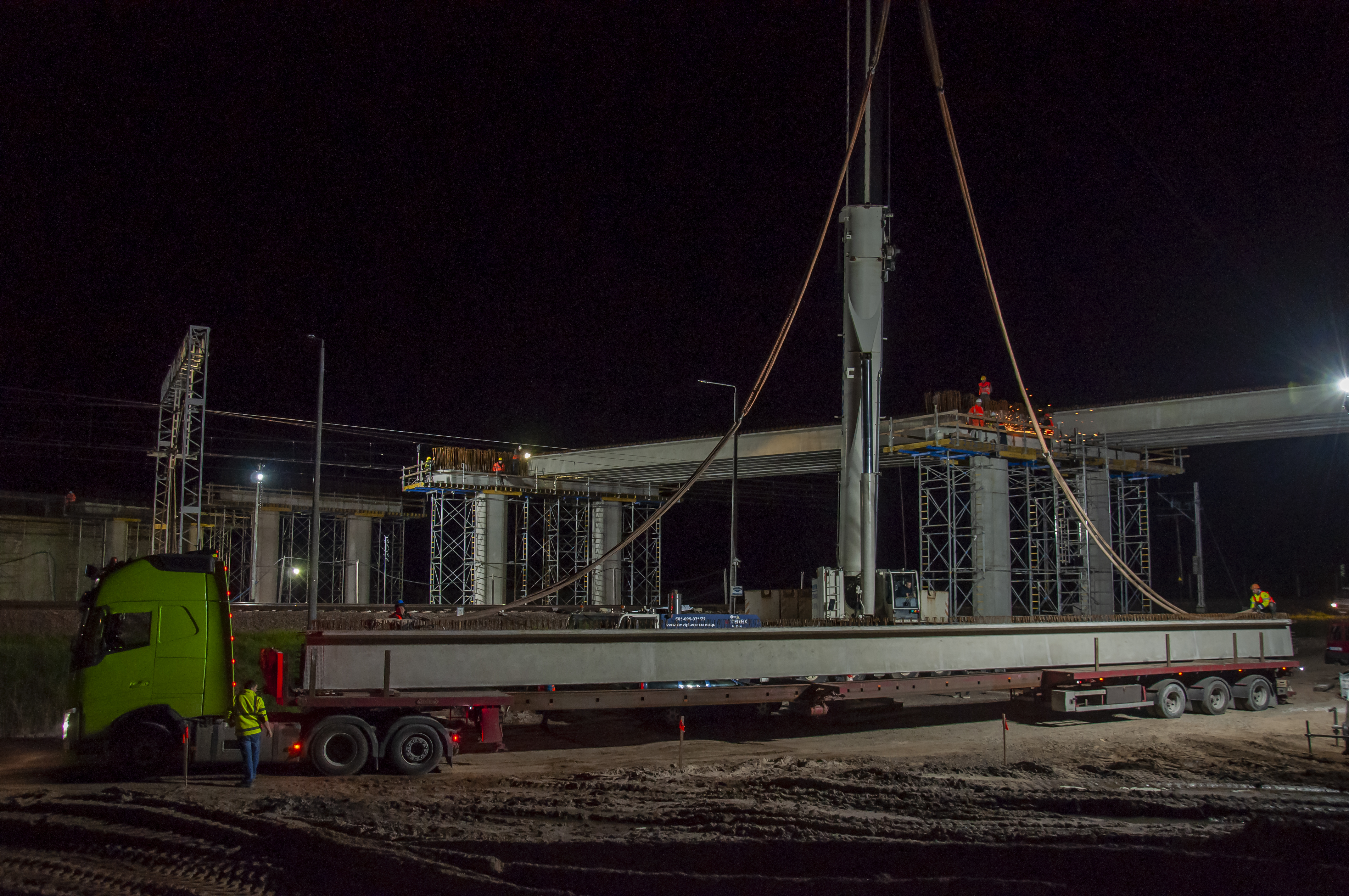 E75, Rail Baltica, CEF, budowa wiaduktu, zdjęcia nocne