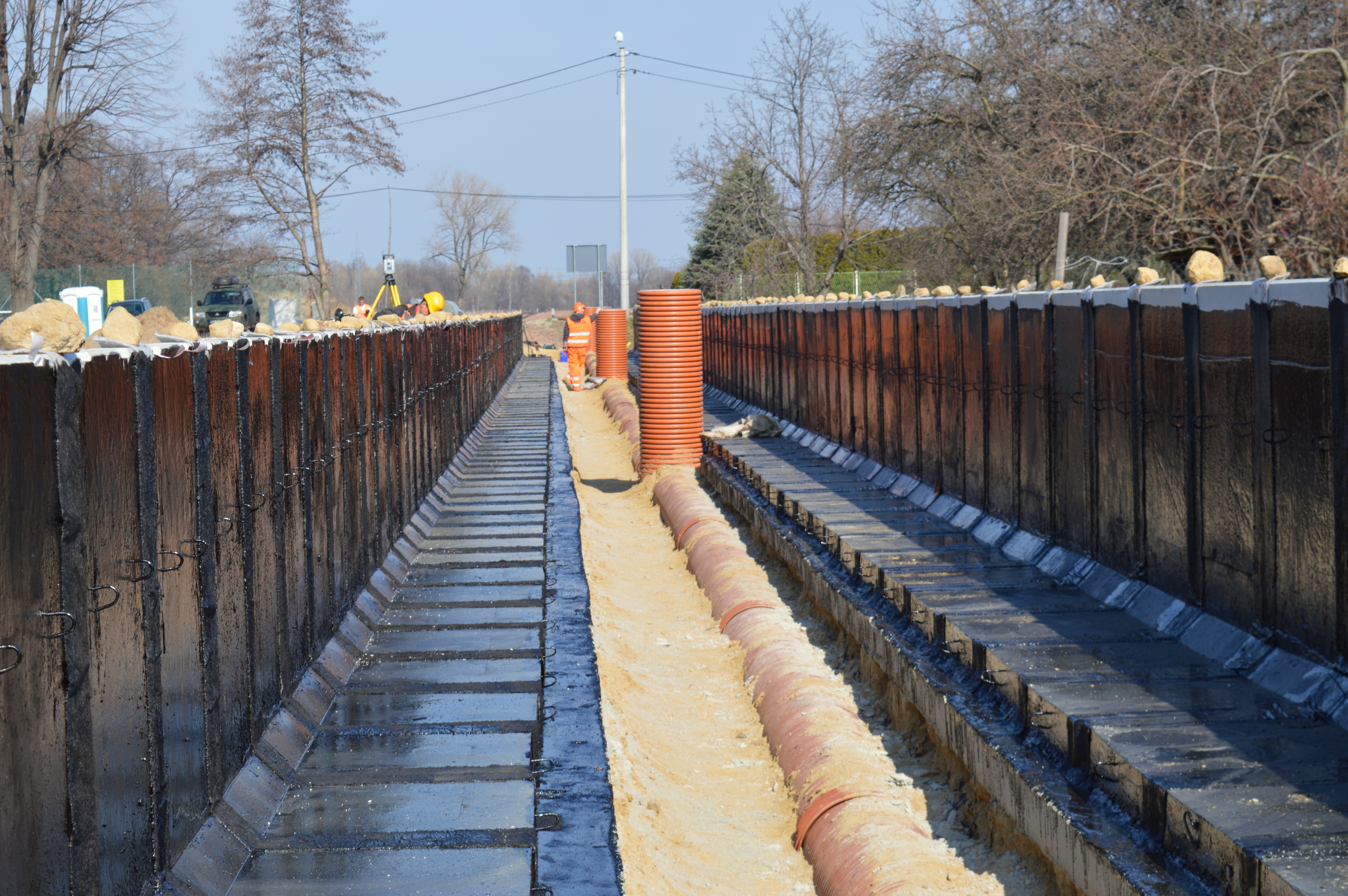Burkatów, fot. marzec 2020 r. Budowa i izolowanie ścianki oporowej, stacja Bukartów