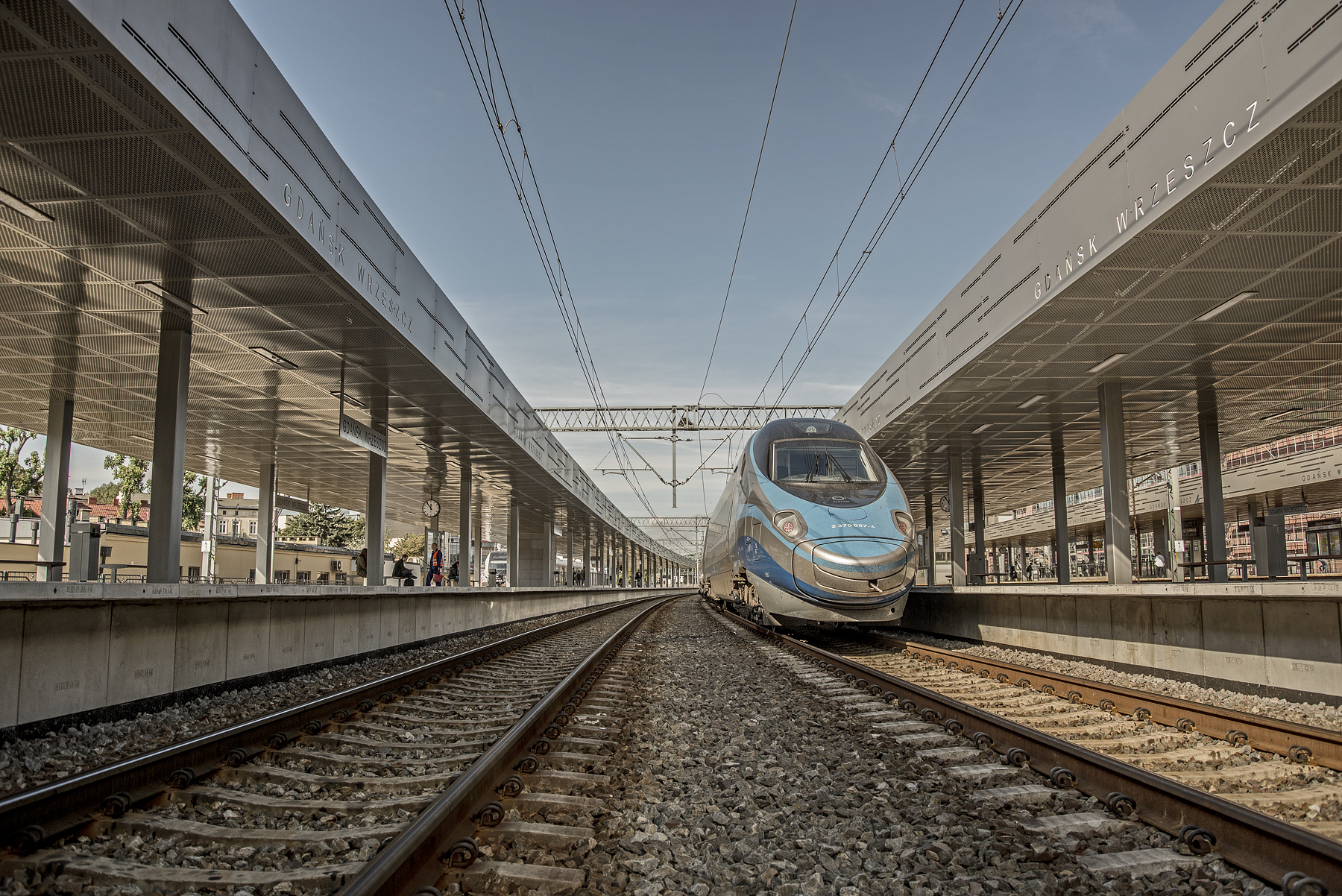 dworzec, peron, Gdańsk, Pendolino, pociąg, dworzec kolejowy, Gdańsk Wrzeszcz, PKP Intercity, tor