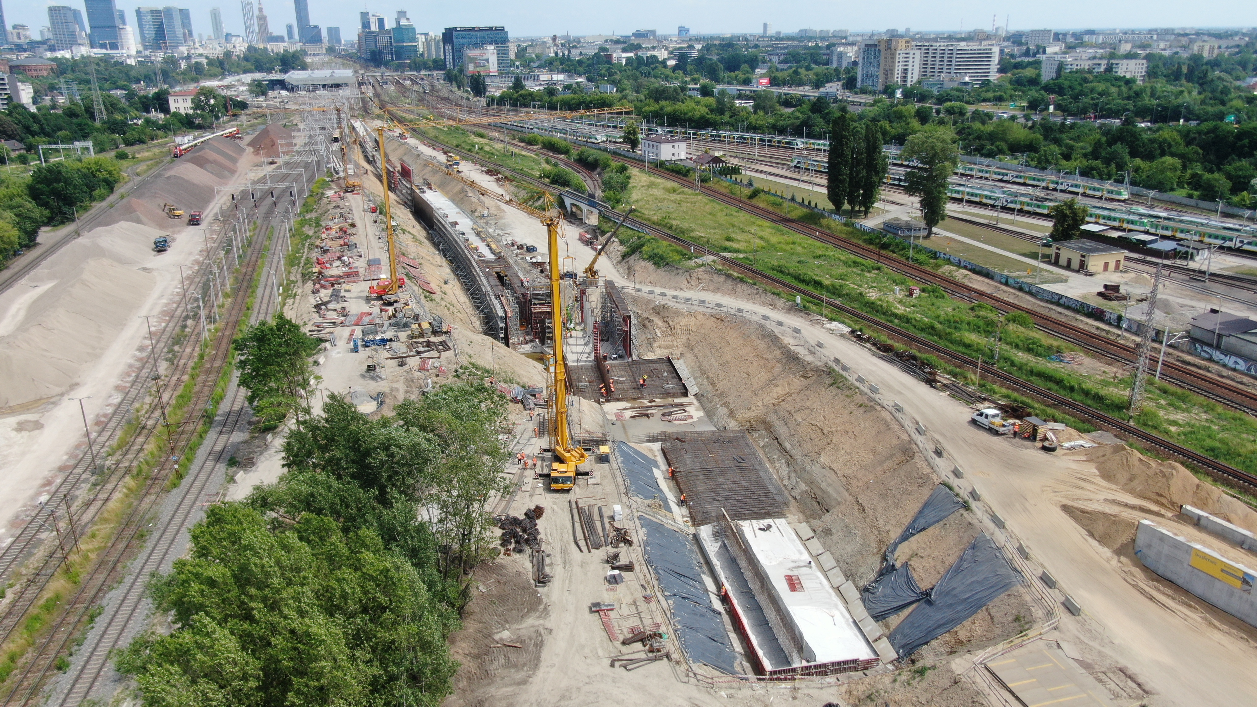 Postępy prac przy budowie nowych wiaduktów kolejowych na Warszawie Zachodniej.